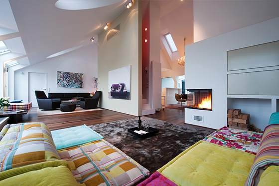 Loggia, Kaminzimmer, Treppe, Schlafzimmer, Dusche, WC