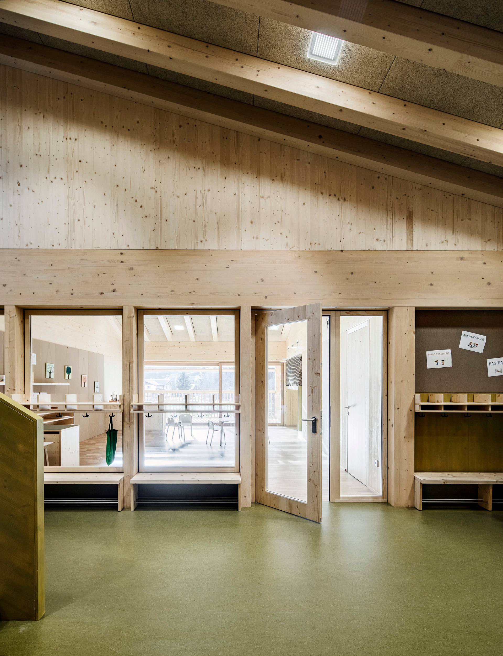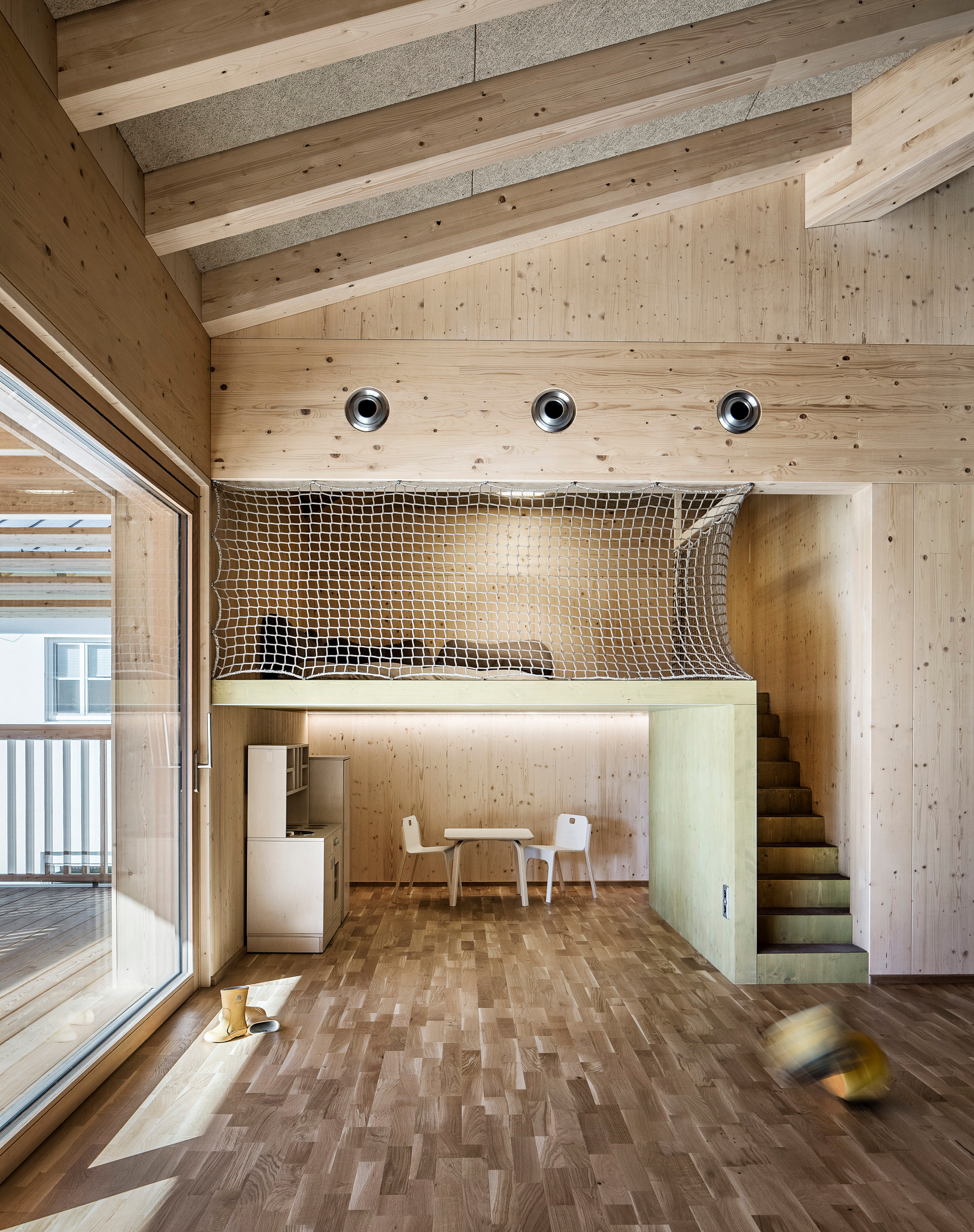 - Holzbau, Überwiegende Verwendung von Dämmstoffen aus nachwachsenden Rohstoffen, Vermeidung von PVC für Fenster, Türen, Vermeidung von PVC im Innenausbau