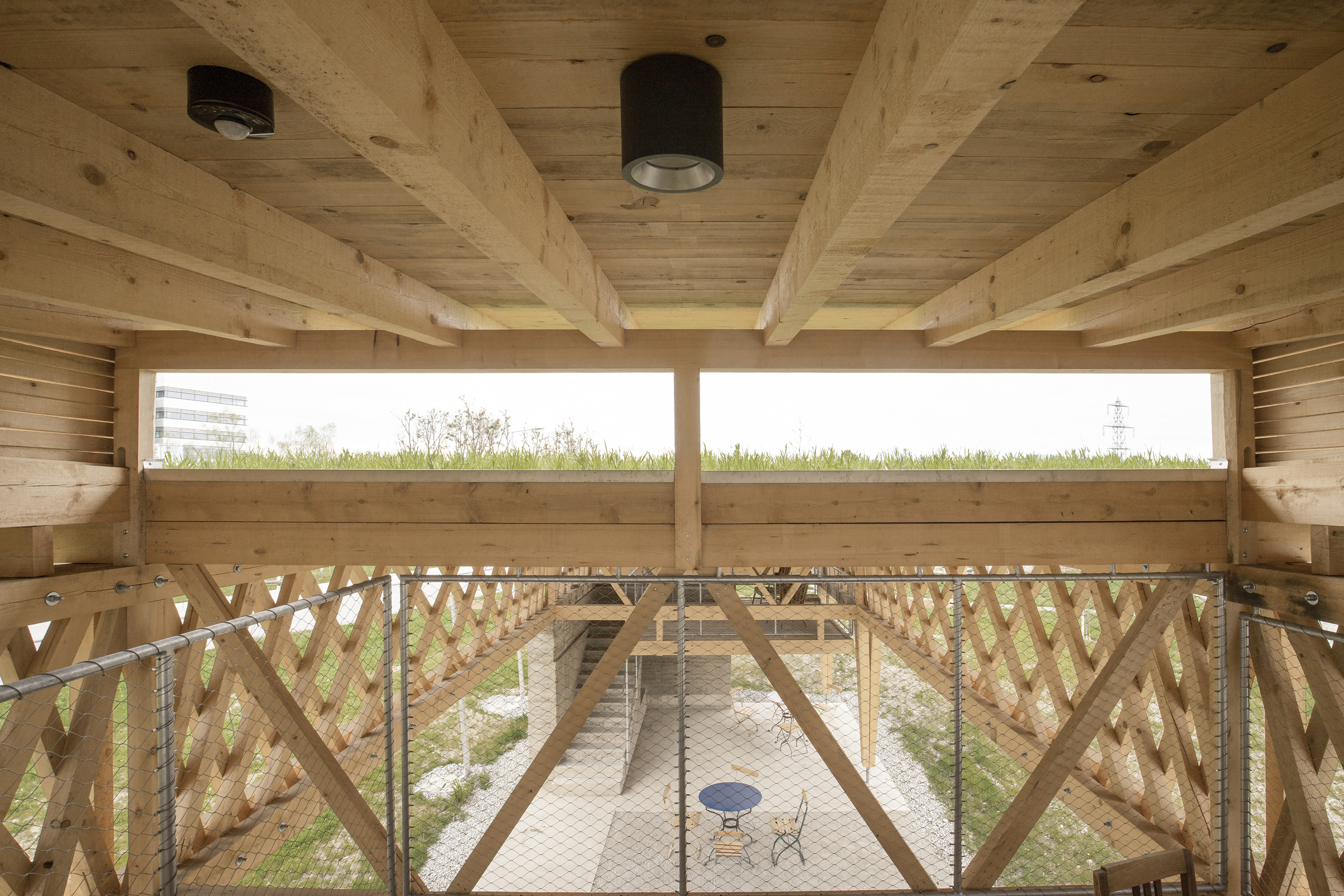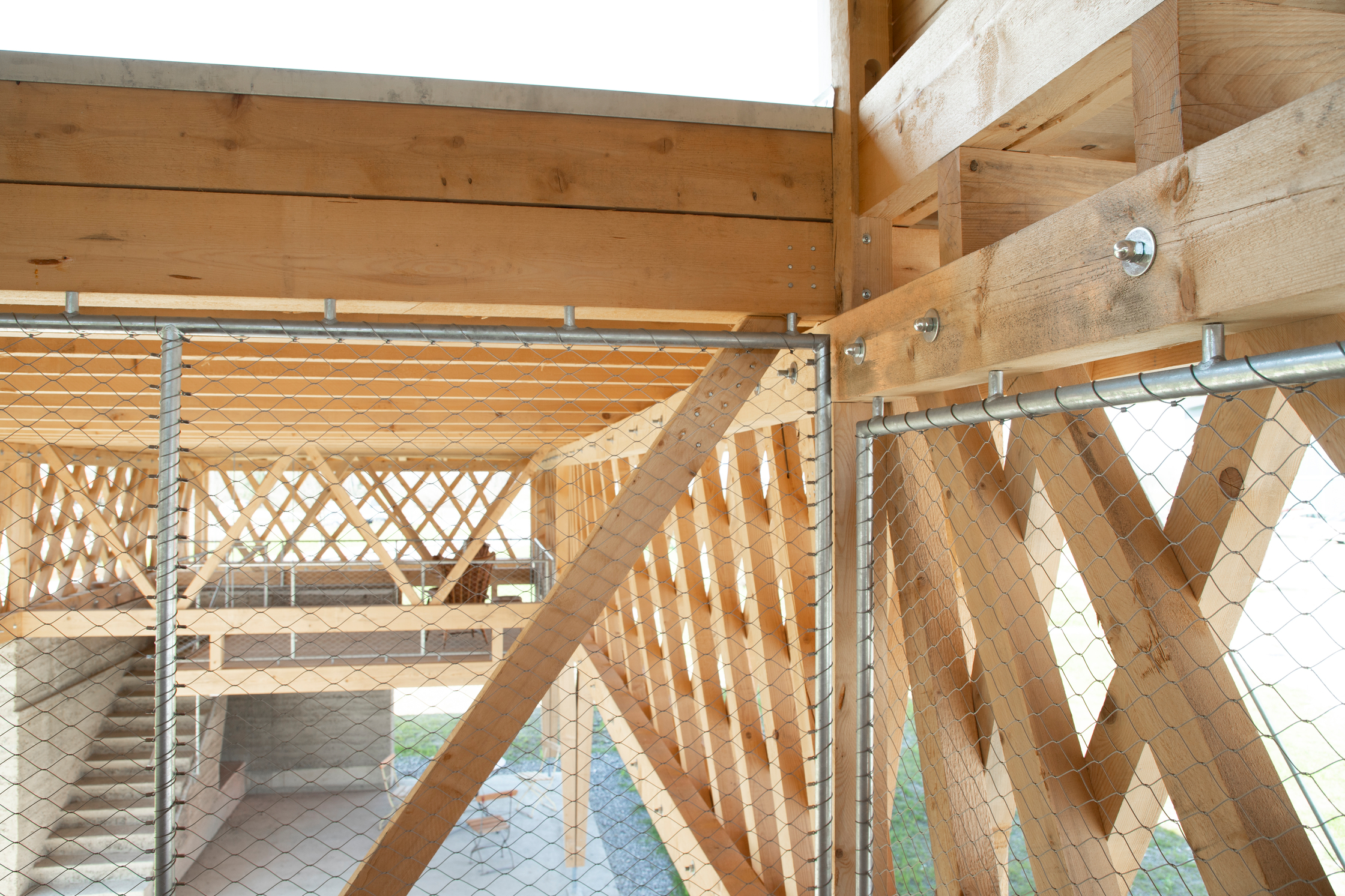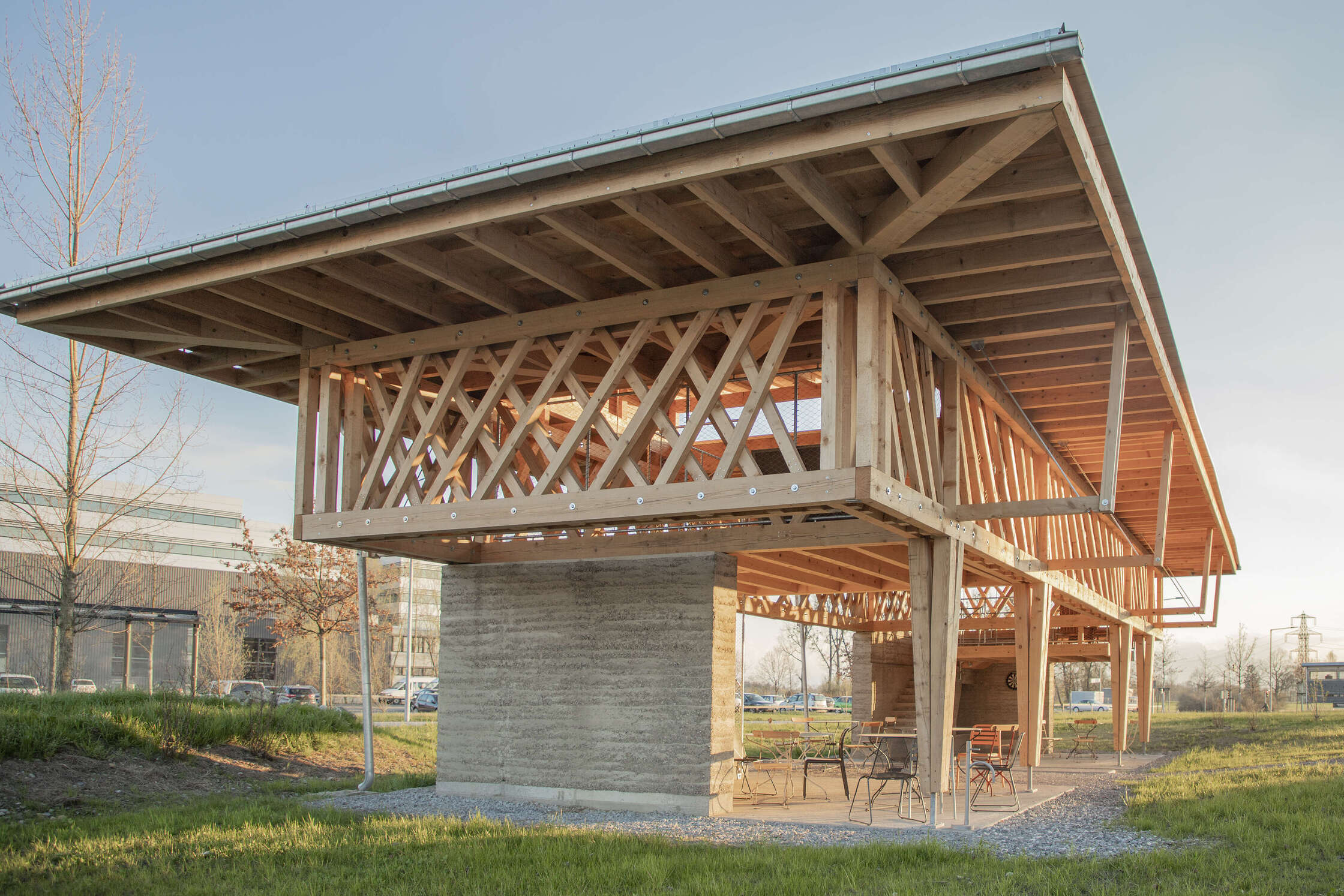 Stampflehm kam als ressourcenschonendes, wiederverwertbares Material für die tragenden Wände zum Einsatz.
