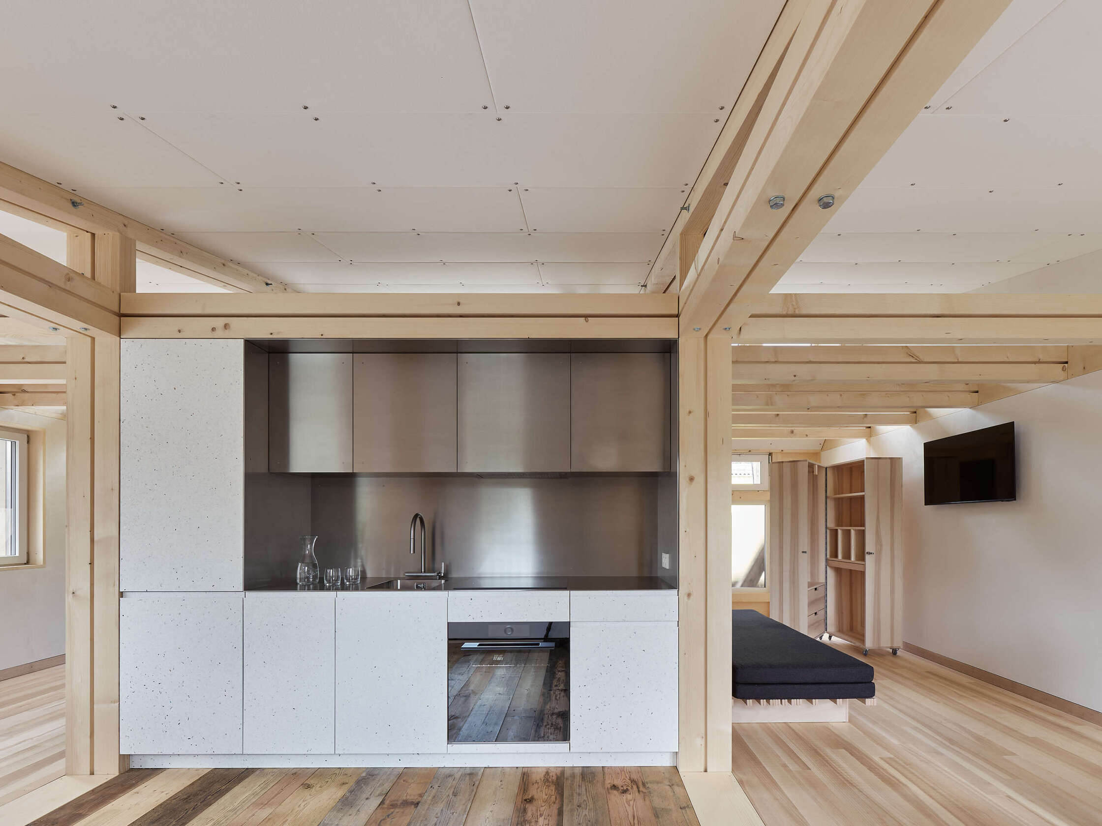 Fabrikation: Kaufmann Zimmerei und Tischlerei, Reuthe, Bregenzerwald, Österreich, Matthias Kaufmann, Mario Meusburger mit KIT Studierenden