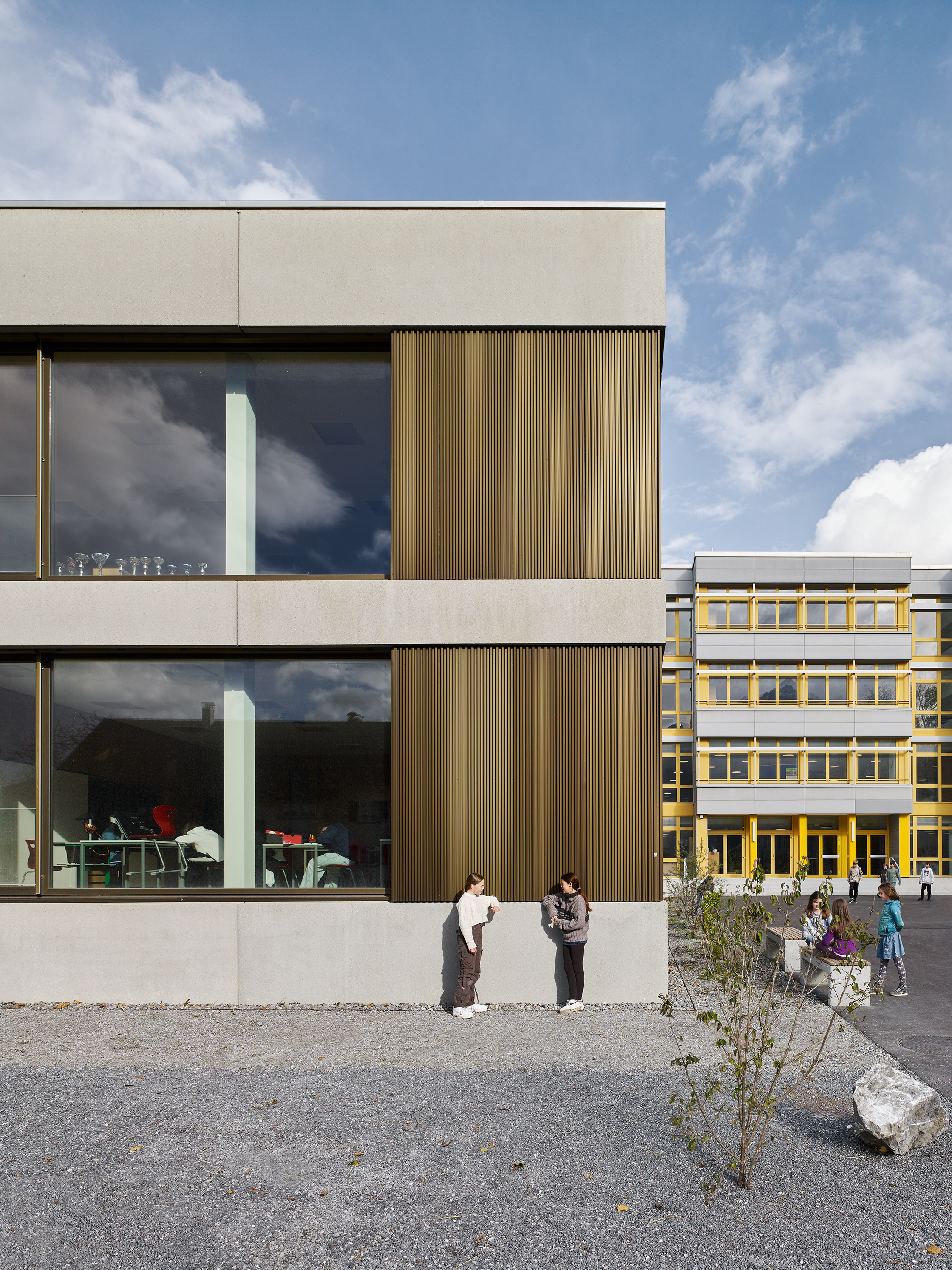 Baumeister: Dobler Baugesellschaft m.b.H, Röthis; Baumeister: GEO-Alpinbau GmbH, Mils;aHeizung Sanitär: Markus Stolz ges. m.b. H., Feldkirch; Lüftung: Kranz Luft klima Technik Gmbh, Weiler; Gerüst: Brunner Gerüst Bau GmbH, Höchst; Estrich: Küng Bodenbau GmbH, Thüringen; Dachabdichtung: IAT GmbH, Röthis; Spengler Fassade: Feist Ges.m.b.H., Satteins; Fliesenleger: Fliesenpool Gmbh, Götzis; Metallbau: Böhler Technik GmbH, Feldkirch; Trennwände: Lenz Nenning GmbH, Dornbirn; Innentüren: Telser O.H.G., Innsbruck; Innentüren: Josef Feuerstein GmbH &co KG, Nüziders; Tischlerarbeiten: Plattner GmbH, Hohenems; Trockenbau: Burtscher Trockenbau Systeme GmbH, Ludesch; Malerarbeiten: Heinrich Liepert GmbH, Bludenz; Böden: Burtscher Böden Gmbh, Nüziders; Pfosten Riegel Fassade: Glas Müller Gmbh, Frastanz; Fenster: Hartmann Fensterbau GmbH; Nenzing; Sporthallenbau: Sportbau Walser GmbH, Altach; Küchen: Kluxmaier &Tanner, Dornbirn; Schulmöbel: Piller Schul- und Objekteinrichtung GmbH, Innsbruck; Möbel Bänke: Frick Burtscher Holz mit Technik GmbH, Dornbirn; Gartengestaltung. Gartenpark Gartengestaltung BK GmbH, Rankweil; Sportanlagen im Freien: SP Sportanlagenbau GmbH, Mautern
