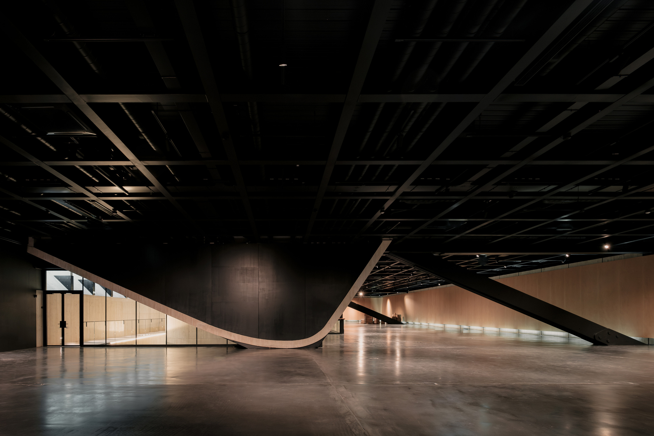 Die Architekten Roland Winkler, Klaudia Ruck und Ferdinand Certov nahmen diesen Gedanken auf und übersetzten ihn in ihrem siegreichen Wettbewerbsprojekt in eine über einem „Fugengeschoß“ schwebende Box, einen schlichten schwarzen Quader mit zwei kleinen Lichtbrunnen nach unten in die bestehende Halle. Den Bedenken des Denkmalamts hielten sie entgegen, dass der vertikale Zubau den Bestand nicht berühre, sondern – über eigene Fundamente – nur seinen Fuß in die Halle setze und dann über den Bestand auskrage, ohne sich auf ihm aufzustützen.