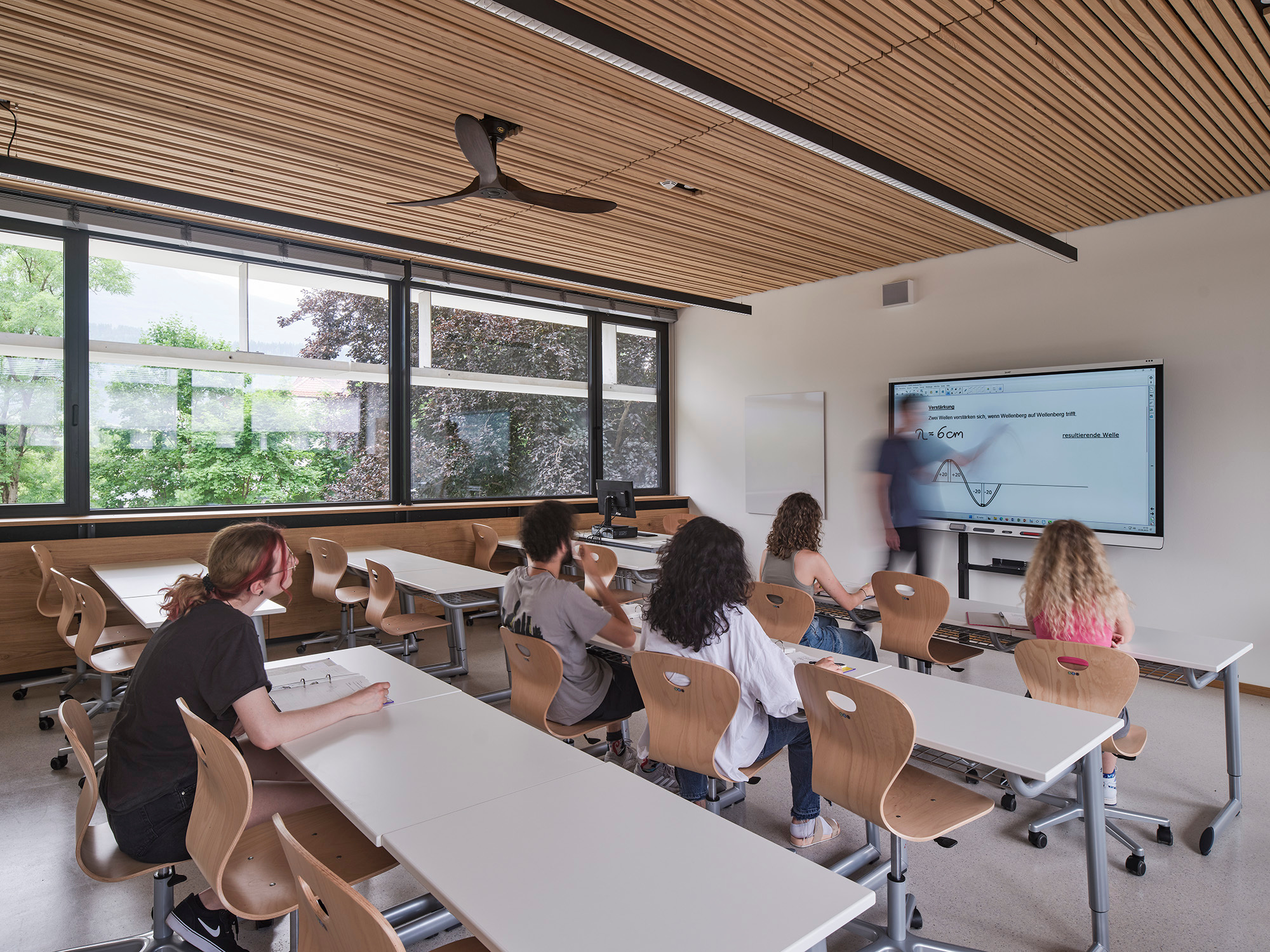 ist ein Gebäude vor allem dann, wenn es von seinen Nutzer:innen und von der Gesellschaft über Jahrzehnte wertgeschätzt, gerne genutzt und gepflegt wird. Es kommt daher gleichermaßen auf ein energetisch sinnvolles Konzept wie auf qualitätvolle architektonische Gestaltung an, nur beides gemeinsam kann nachhaltig sein. Diese Schule erreicht auf neuen Wegen sehr hohe energetische Ziele – eine klimapositive Gesamtbilanz – und gleichzeitig bietet sie ihren Schüler:innen und Lehrer:innen langfristig eine angenehme Lern- und Arbeitsatmosphäre. Sie wurde als Pilotprojekt umgesetzt, ist jedoch als massenmarkttaugliche Lösung innerhalb eines Standardbudgets realisierbar und skalierbar – und damit ein mögliches Role Model für nachhaltige Bildungsbauten.