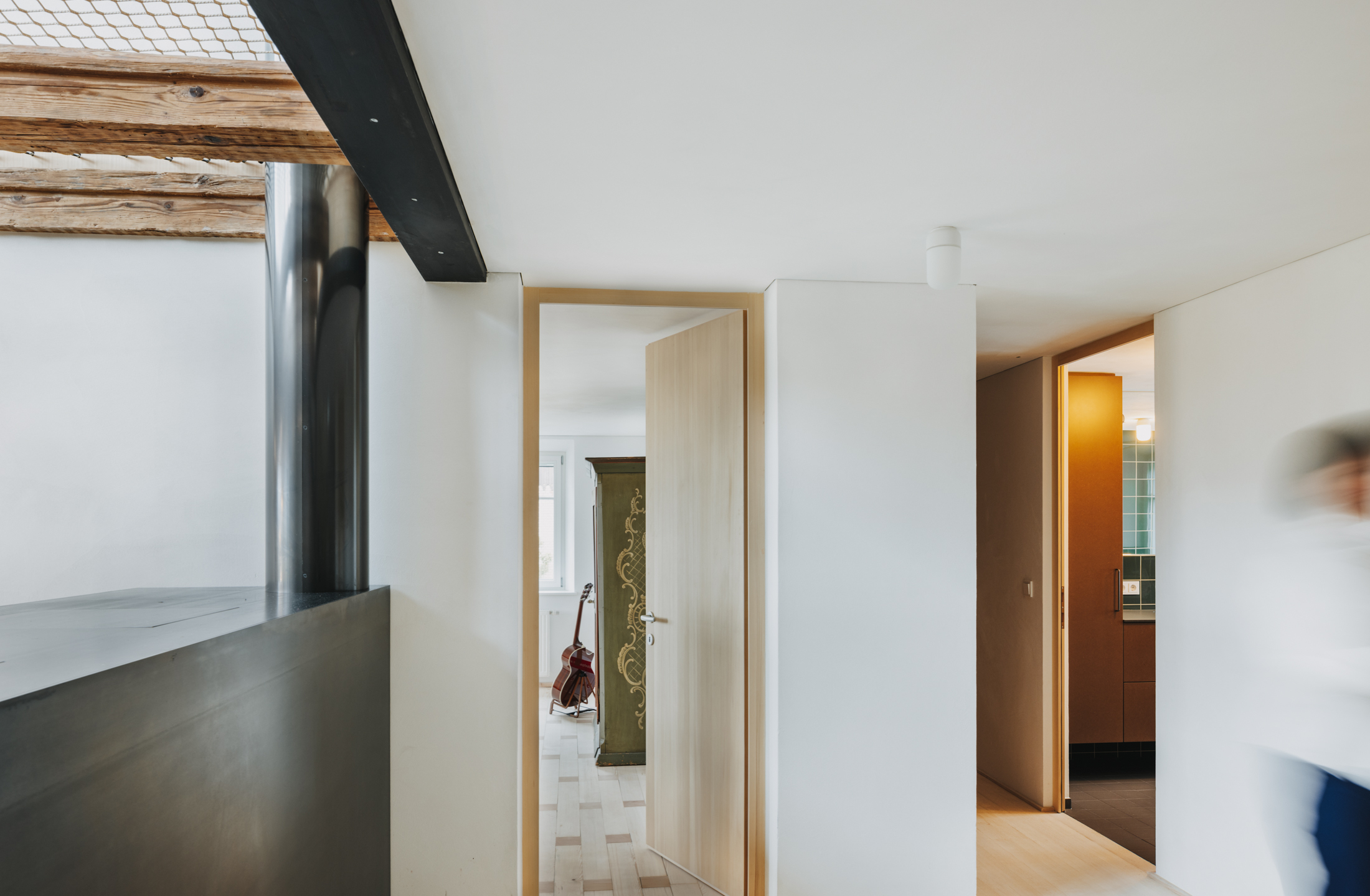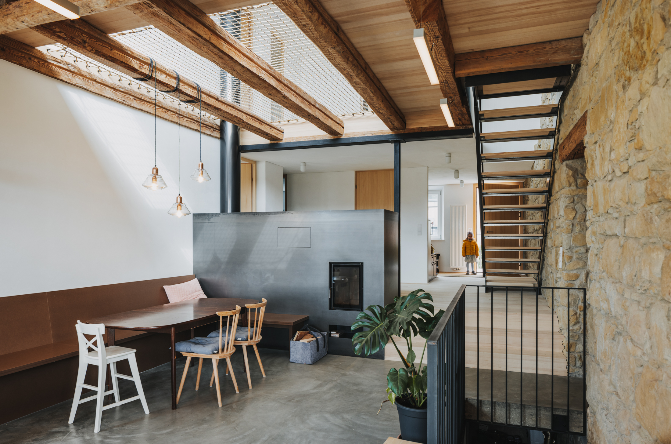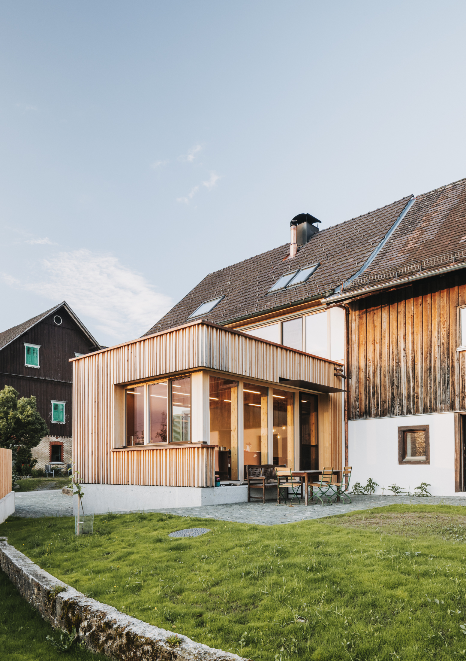 Durch den bedarfsgerechten Umgang mit dem Bestand und die raffiniert integrierte Erweiterung konnte das gewünschte Raumprogramm im vorderen Teil, dem historischen Wohntrakt des Hauses, realisiert werden. Dachraum und Stadel blieben als Raumreserve mit Erweiterungspotenzial für die Zukunft erhalten.