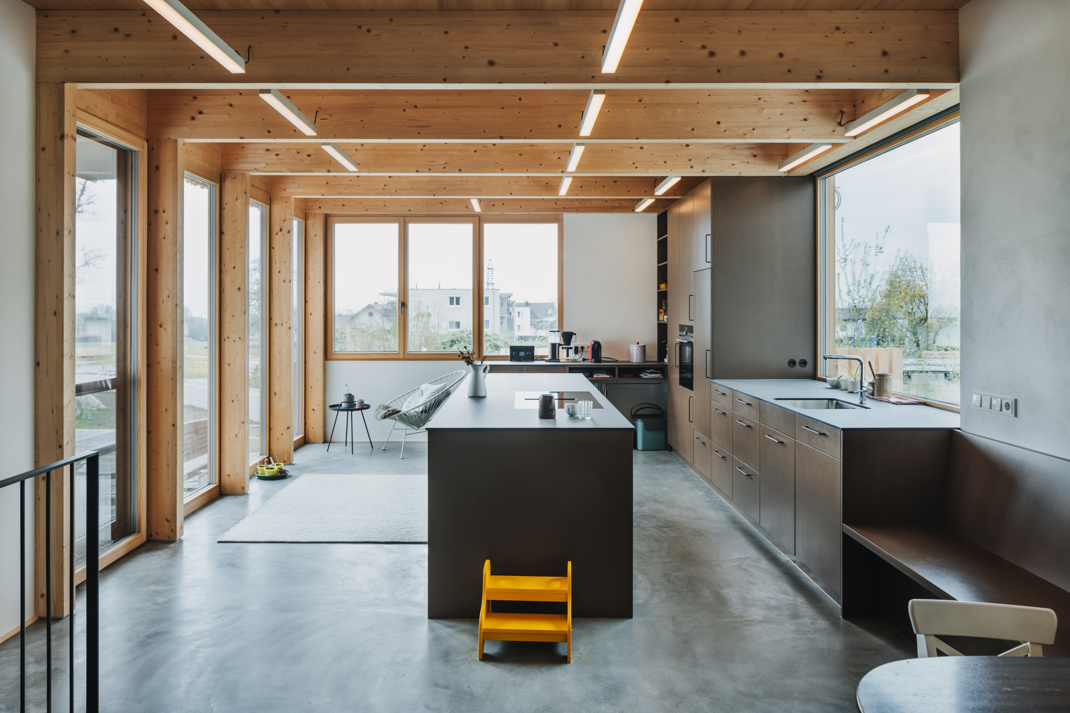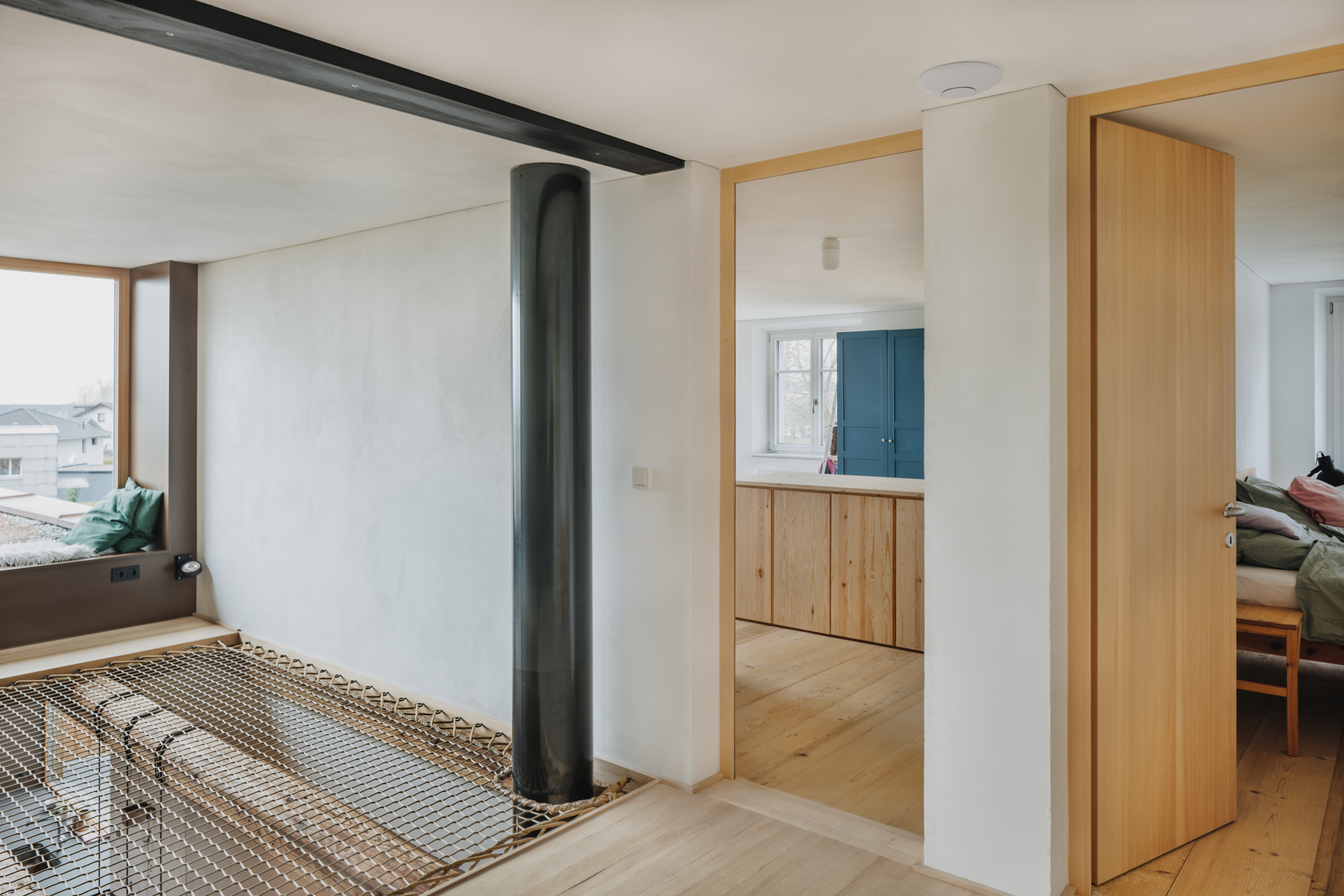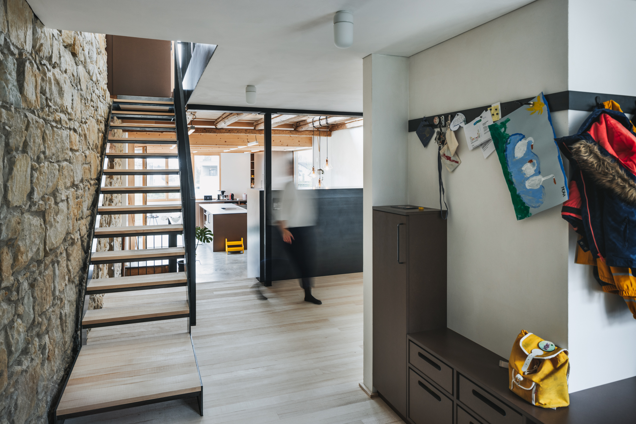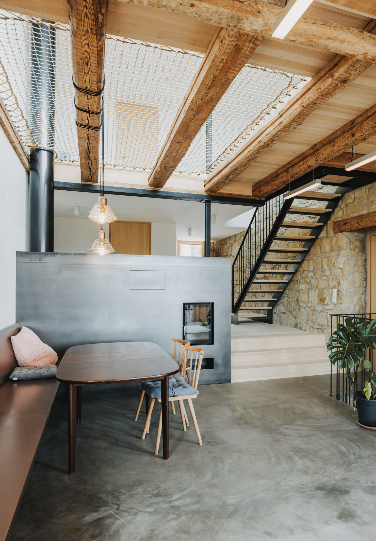 Durch den bedarfsgerechten Umgang mit dem Bestand und die raffiniert integrierte Erweiterung konnte das gewünschte Raumprogramm im vorderen Teil, dem historischen Wohntrakt des Hauses, realisiert werden. Dachraum und Stadel blieben als Raumreserve mit Erweiterungspotenzial für die Zukunft erhalten.