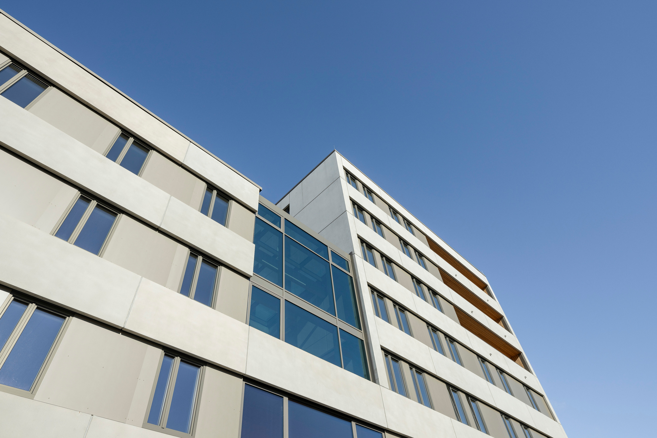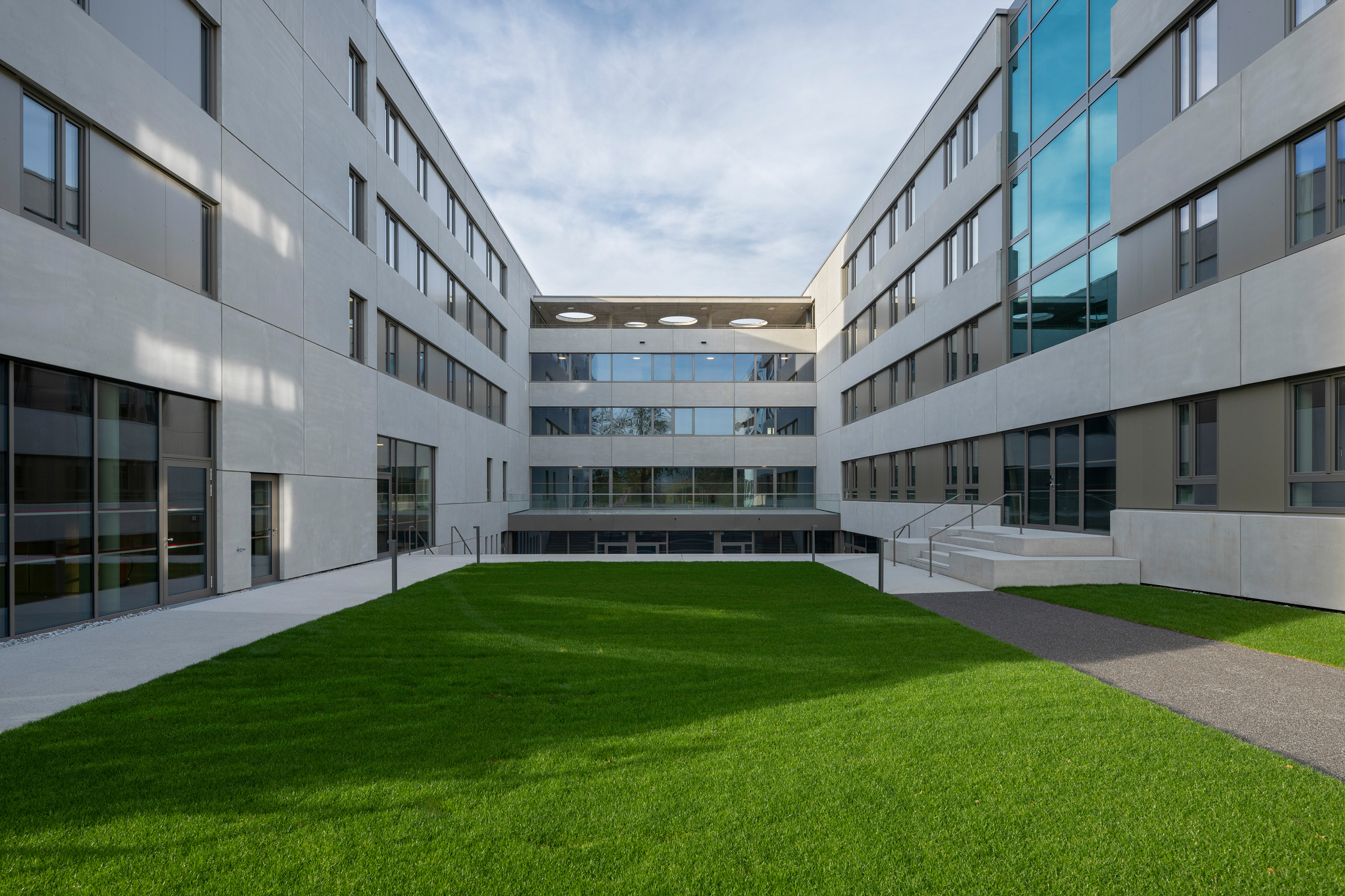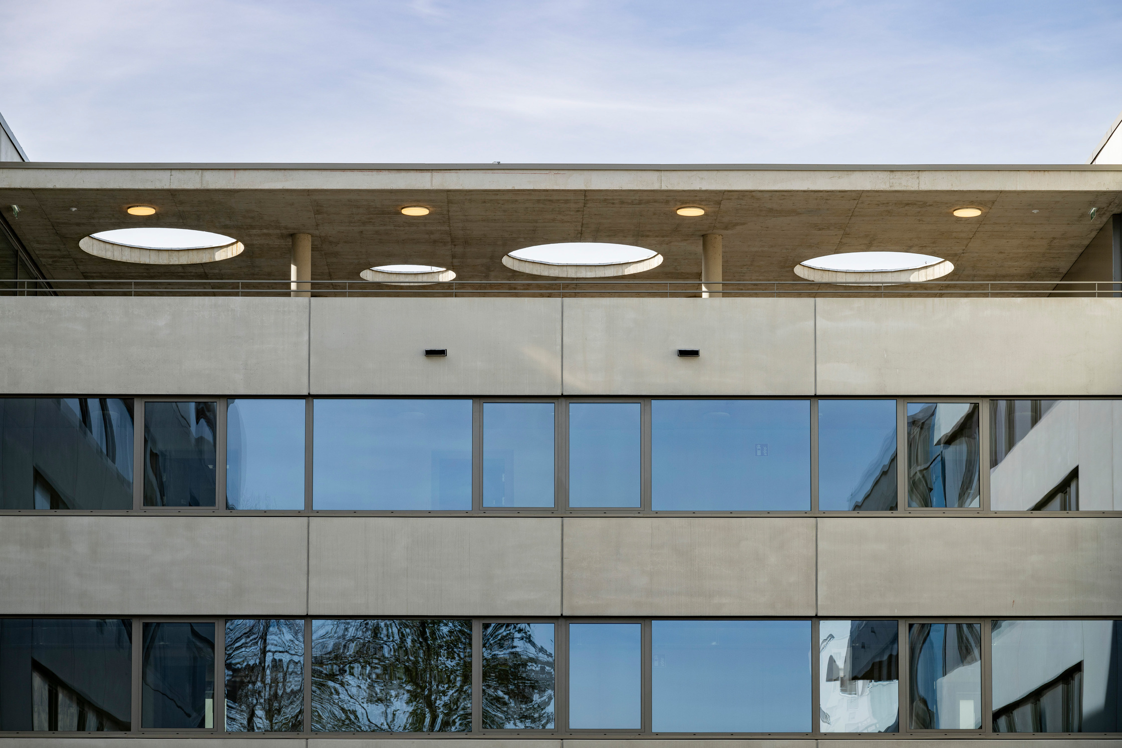 Die Wasser-Wasser-Wärmepumpe dient als nachhaltige Wärmequelle und unterstützt das Gebäude dabei, eine hohe Energieeffizienz zu erreichen. Eine Photovoltaik-Anlage mit zirka 30kWPeak auf dem Dach generiert erneuerbare Energie und reduziert die Abhängigkeit von externen Energiequellen.