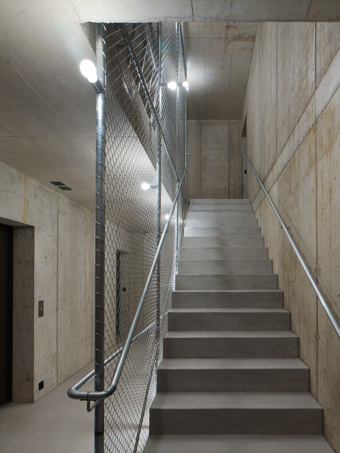 Außen: selbsttragende Betonfassade mit vorgehängter Metallfassade Innen: Massivbau aus Beton/Backstein