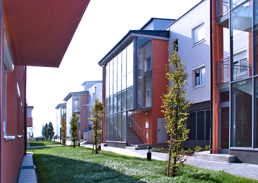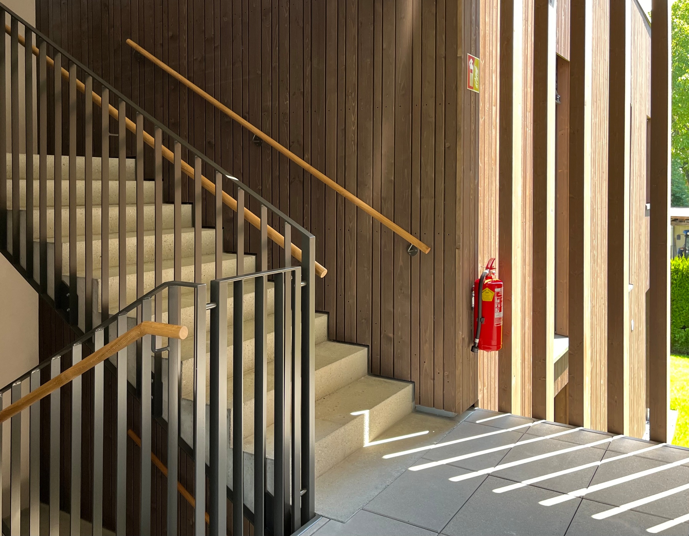 Extensiv begrünte Dachflächen mit Photovoltaikanlage und Heizung mittels Erdwärmepumpe tragen zur Reduktion des ökologischen Fußabdrucks bei.
