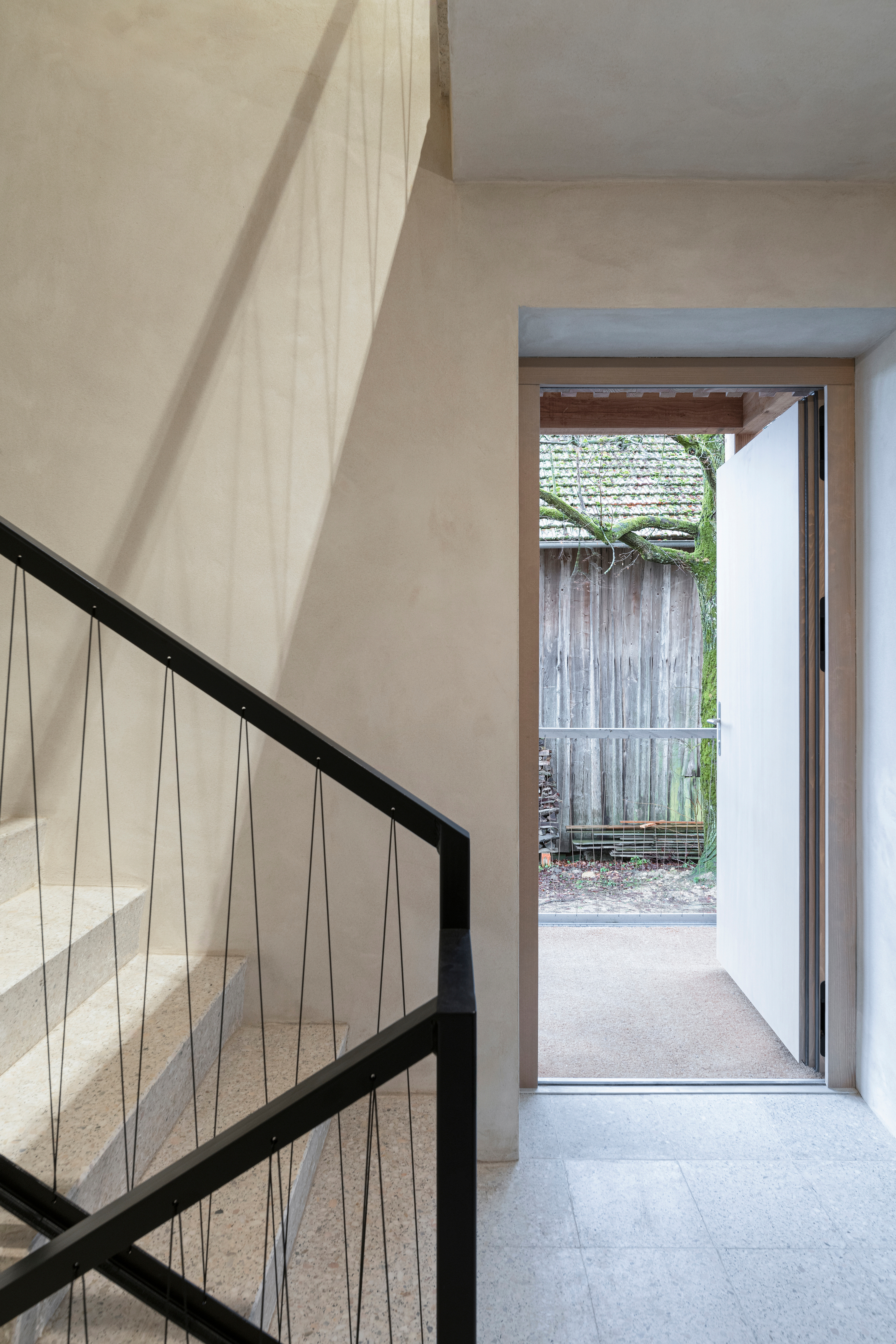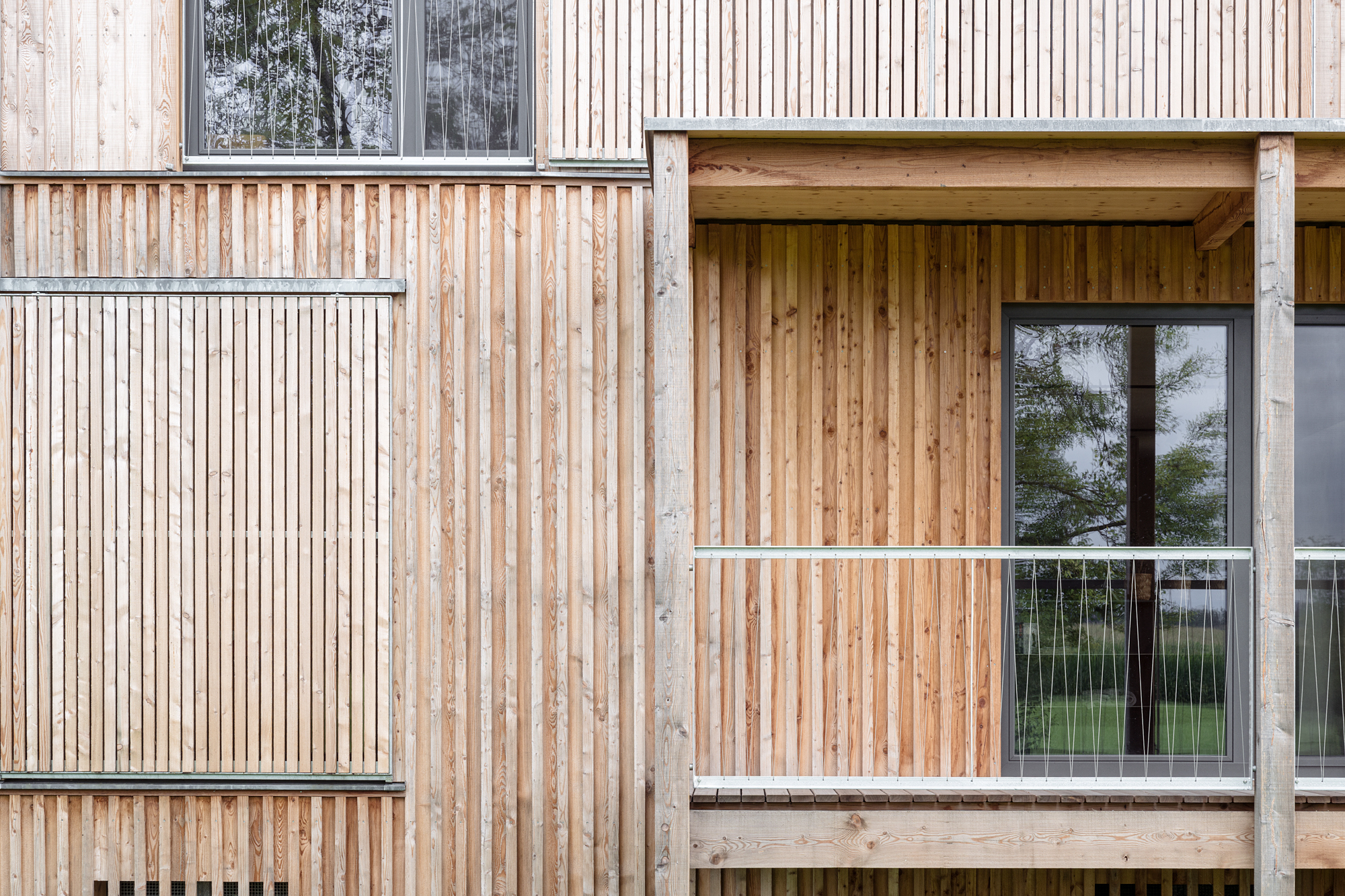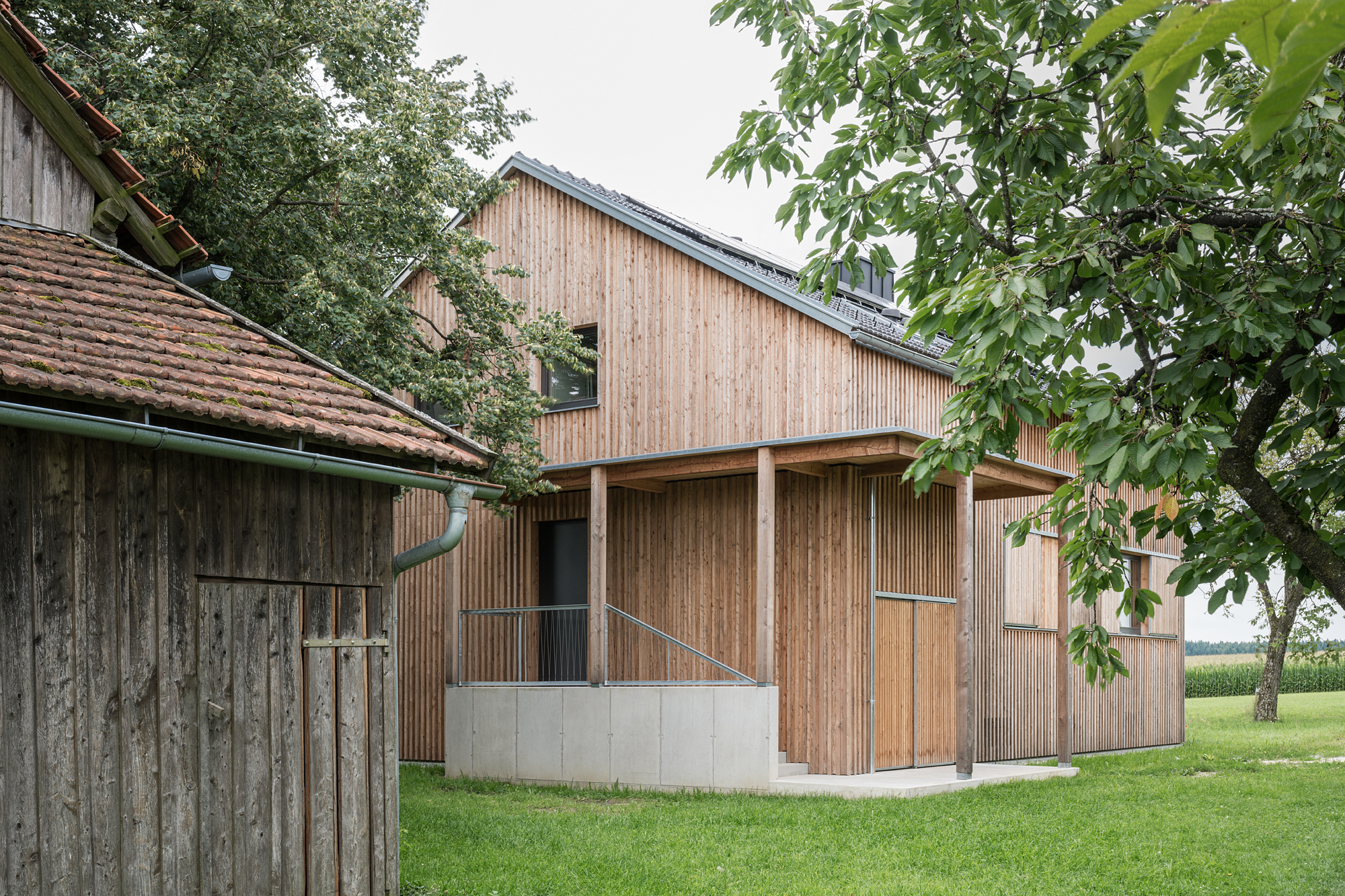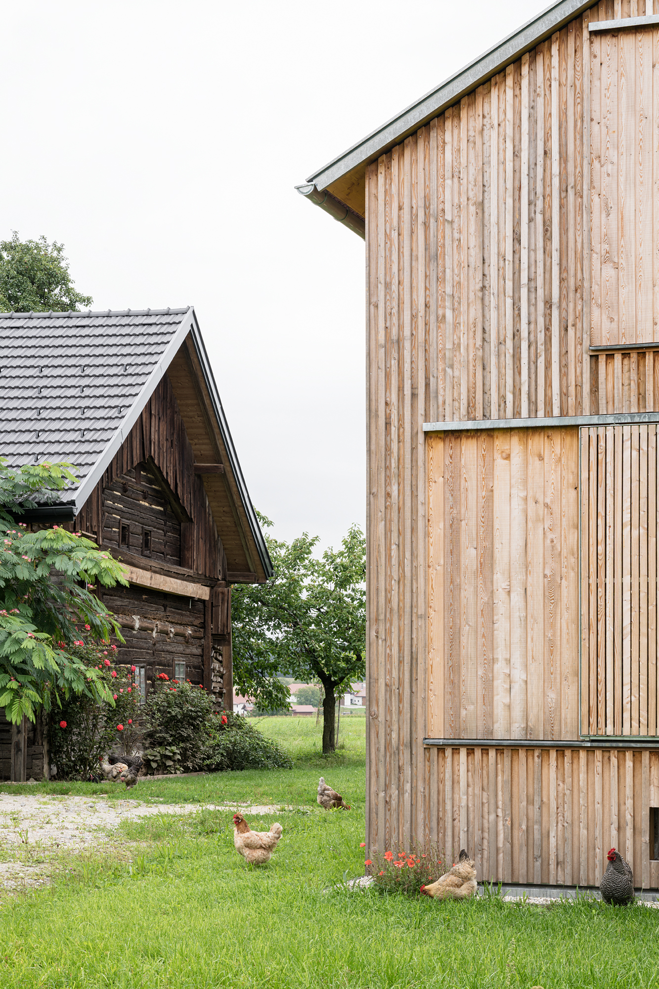 keine weitere Bodenversiegelung, ökologische Baumaterialien (Holzfenster, Holzinnentüren, Lehmputz, Holzfassade sägerauh, Möbel aus dem eigenen Holz etc.);