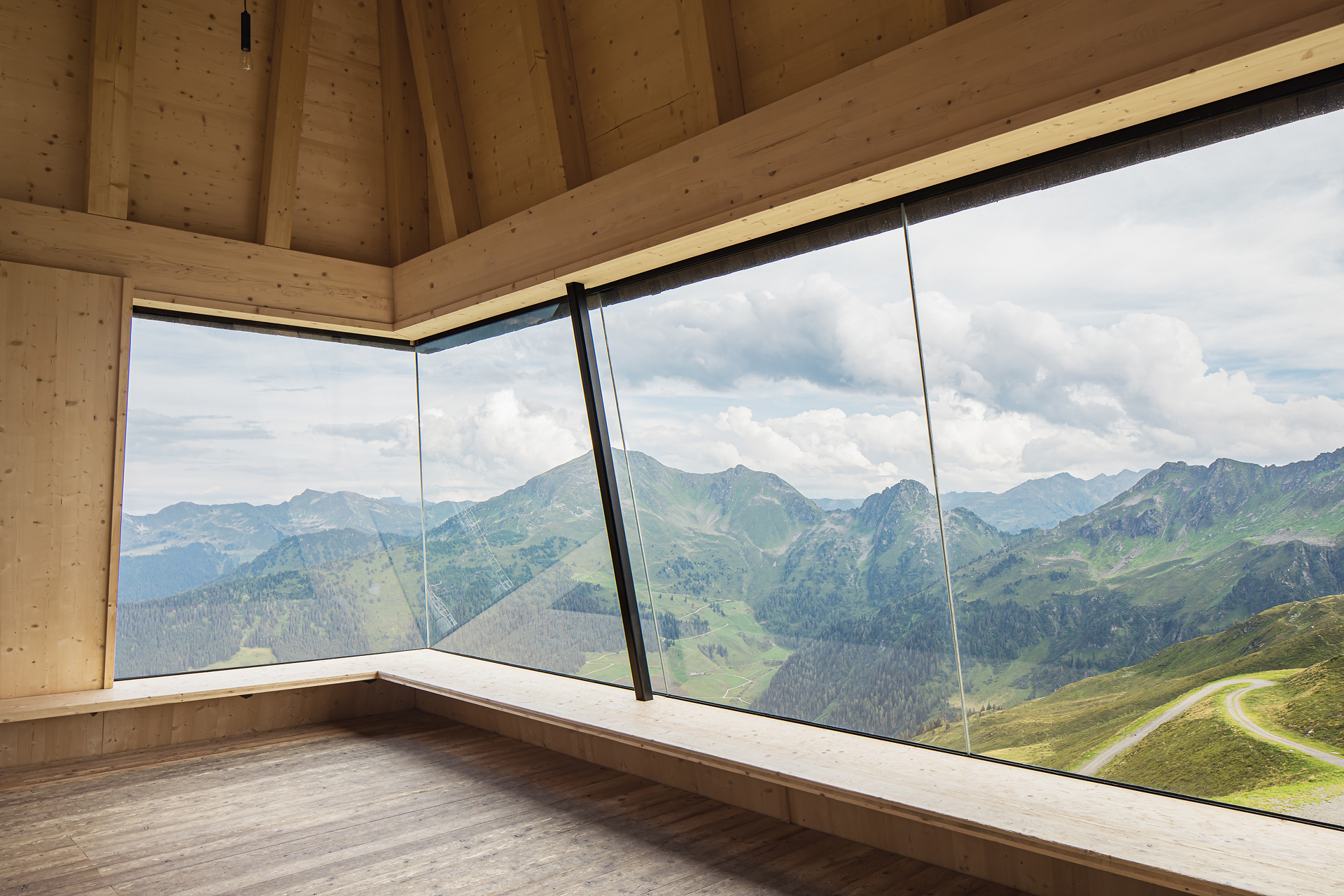 Liftkontrollraum, Sanitärräume, Panoramaraum, Aussichtsplattform