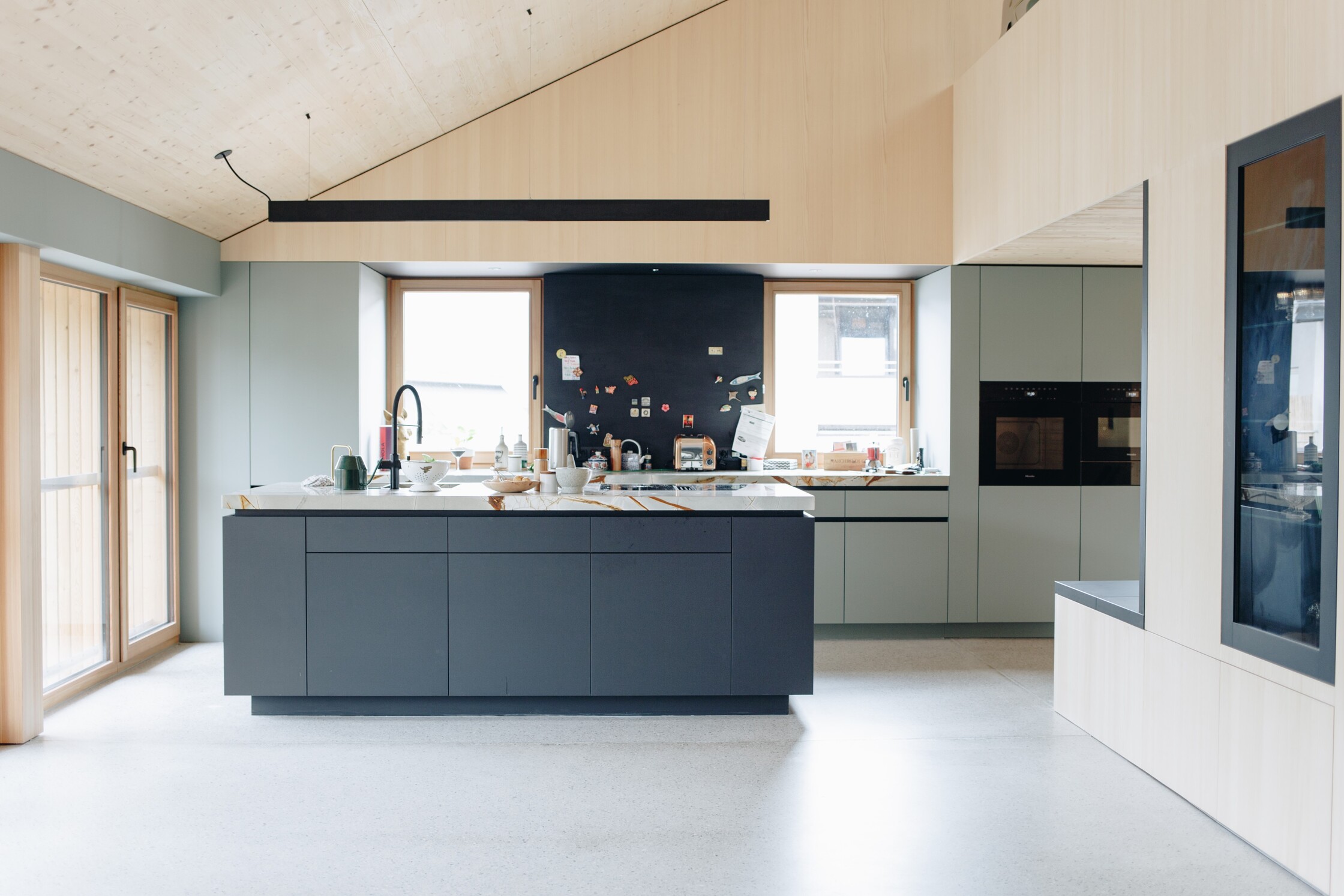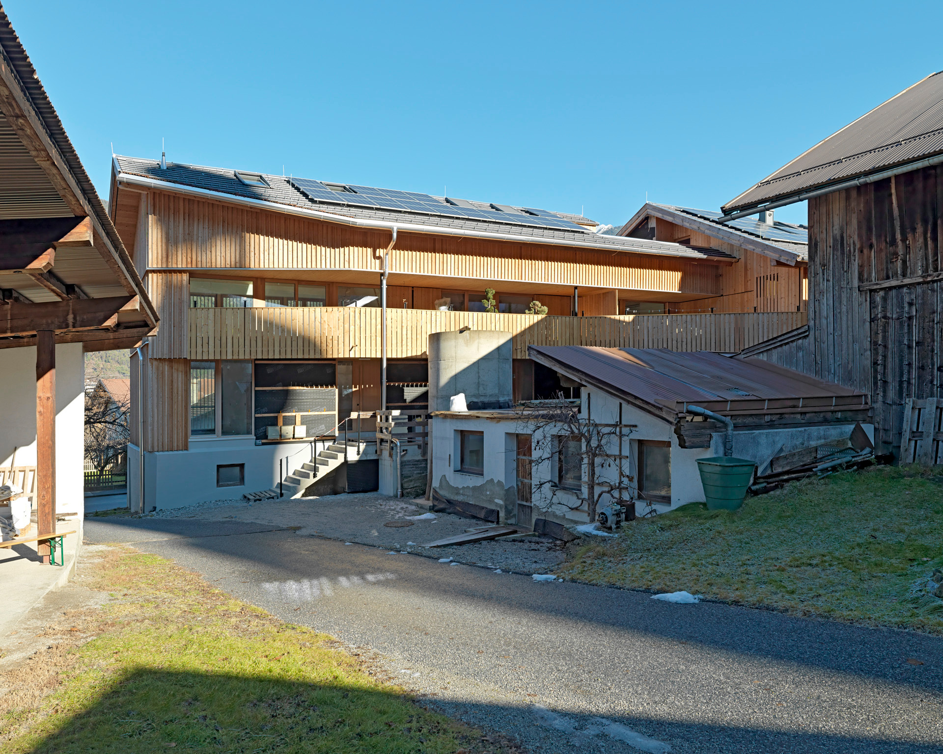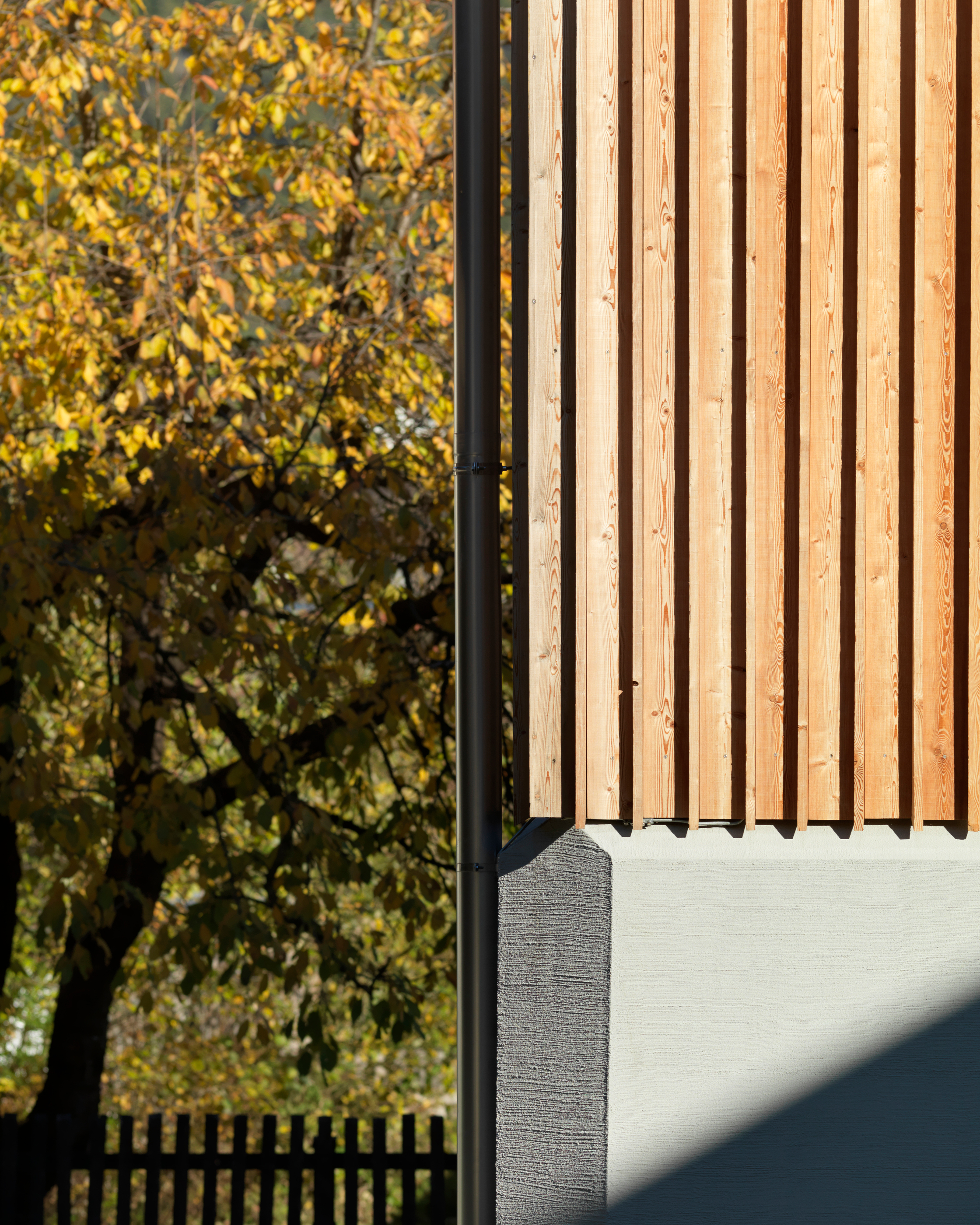 Regenwasserrückgewinnung, Luftwärmepumpe und PV-Energieerzeugergemeinschaft, Holzbau