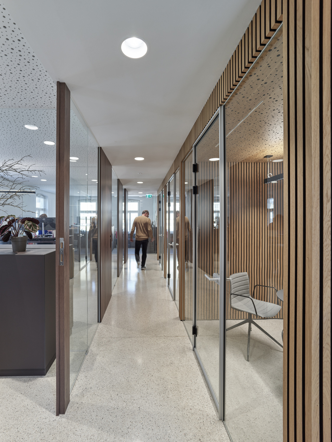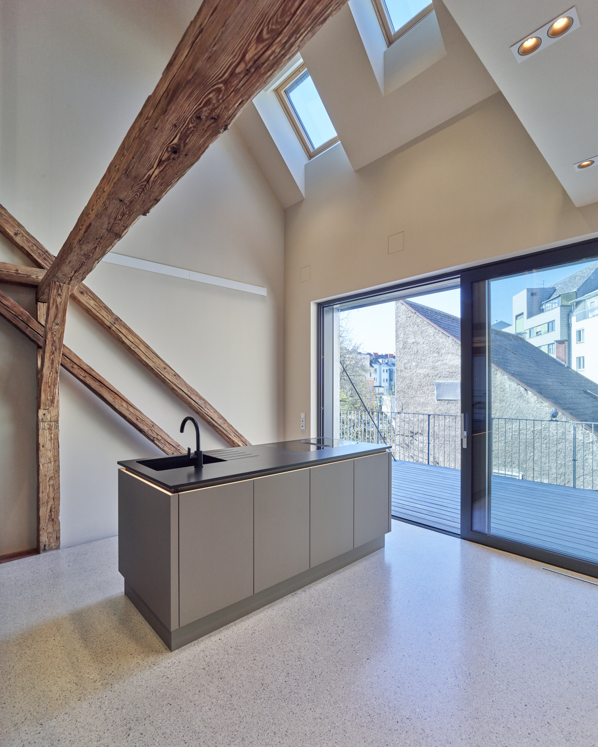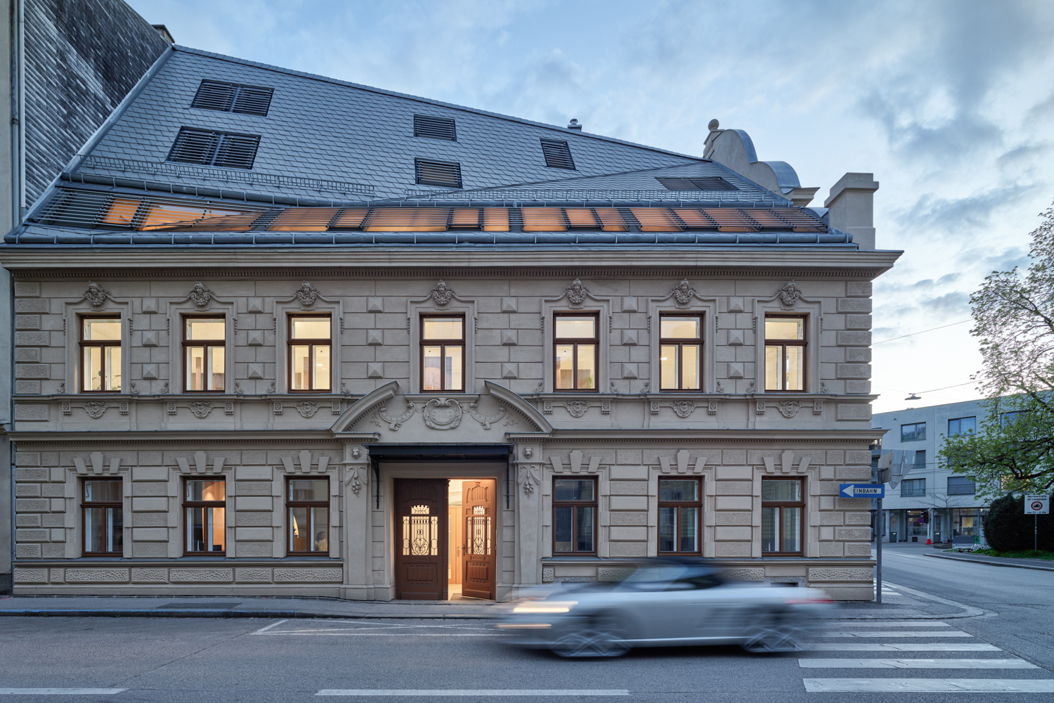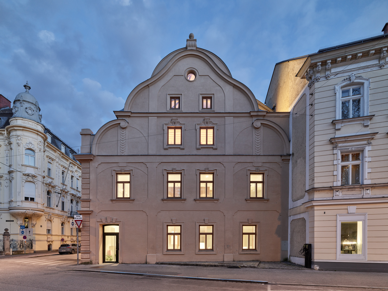 Zum ProduktSanierung statt Neubau, der Wärmehaushalt wird durch intelligente Steuerung geregelt, Einsatz von Wärmepumpen, Niedrigtemperaturheizung, Flächenkühlung und kontrollierter Lüftung.