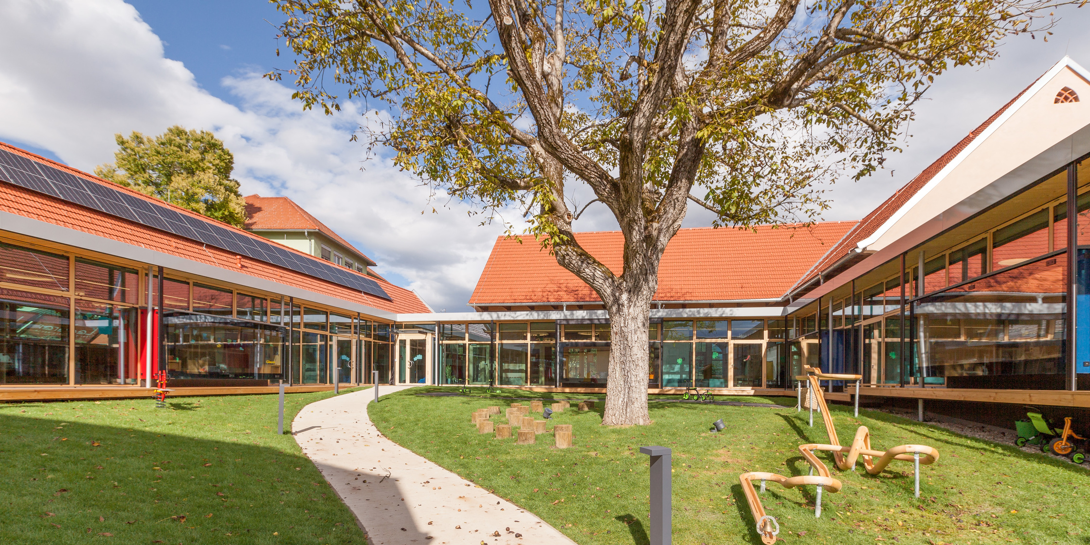 Kindergarten mit 6 Gruppen plus eine alterserweiterte Gruppe,