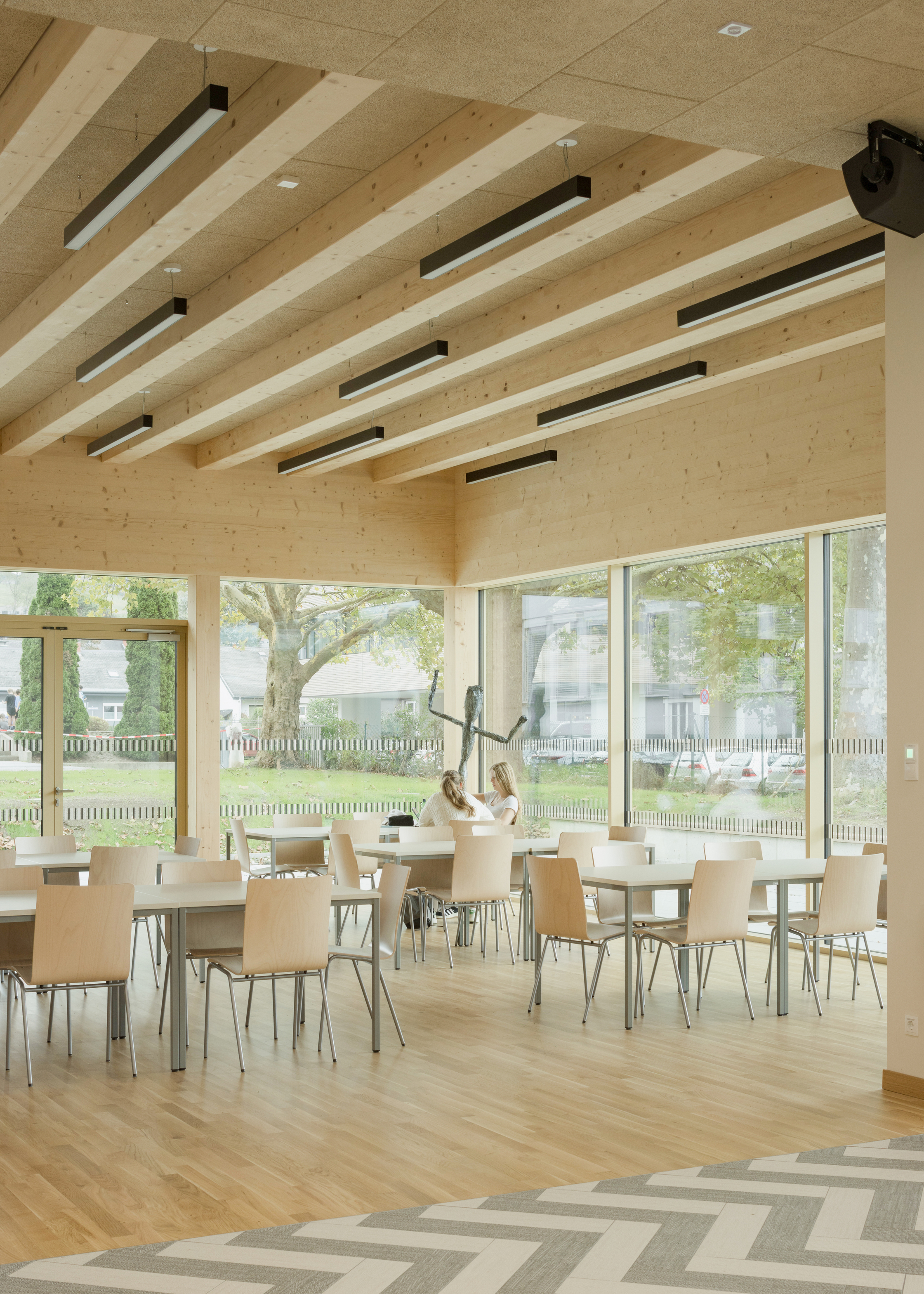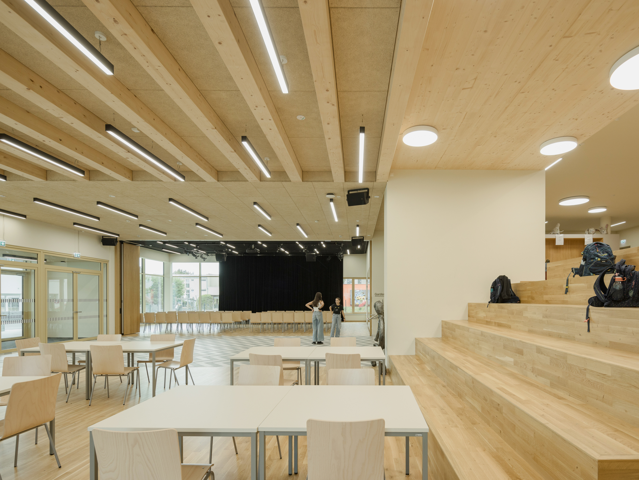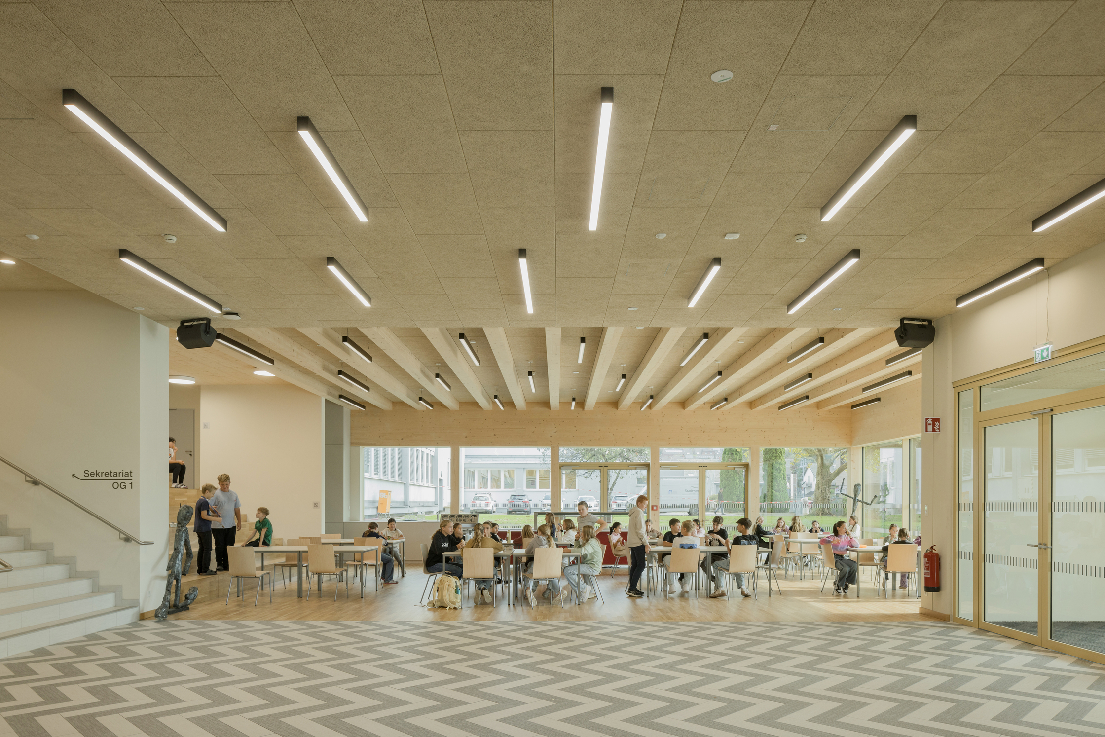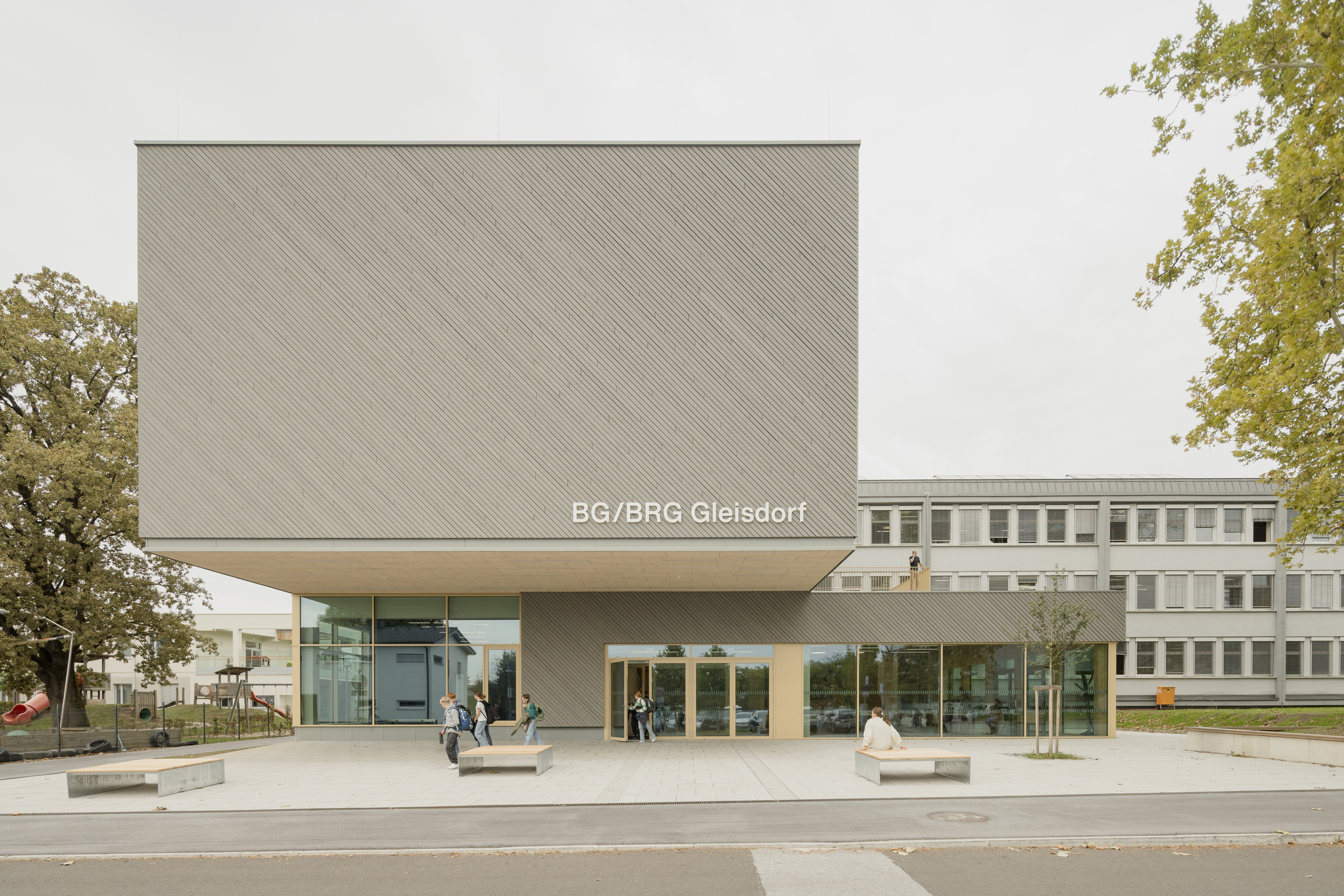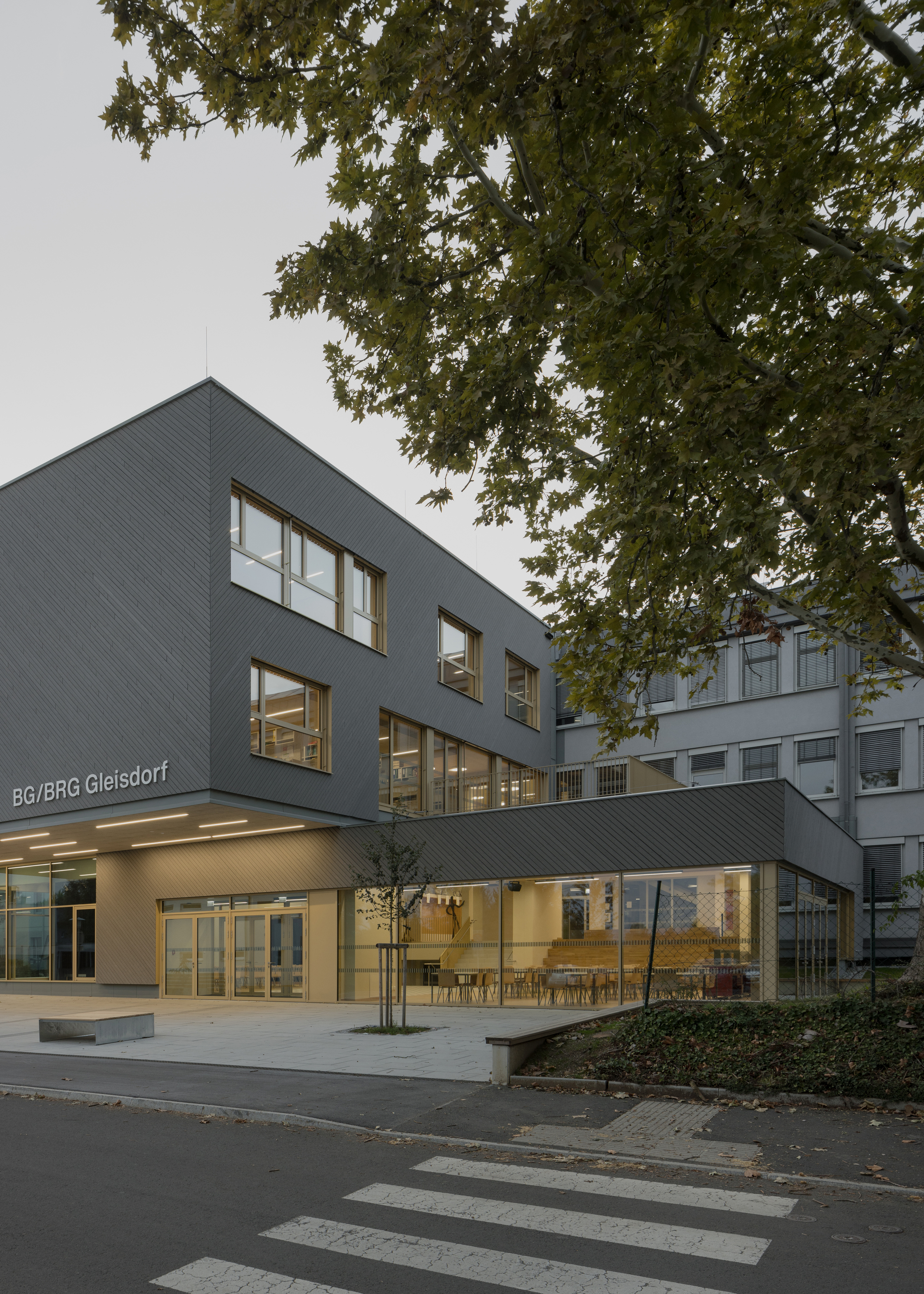 Zum ProduktKlimaAktiv-Standard „Gold“: Hoher Einsatz von Holz in Konstruktion und Oberfläche, Anschluss an die Fernwärme Gleisdorf, PV Anlage, Fußbodenheizung, Zu- und Abluftanlage, Mechanischer Sonnenschutz, Sonnenschutzglas in der Aula, LED-Beleuchtung. Der Bestand wurde haustechnisch saniert.
