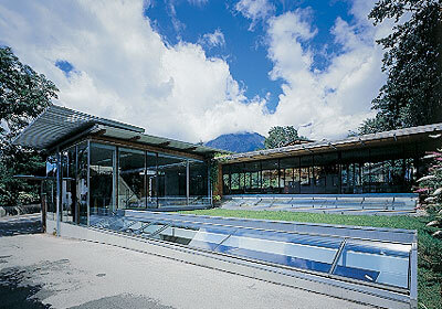 Die Außenwände sind durch die teilweise raumhohe Ausführung und den engen Fassadenraster großteils auf Wandpfeiler reduziert.