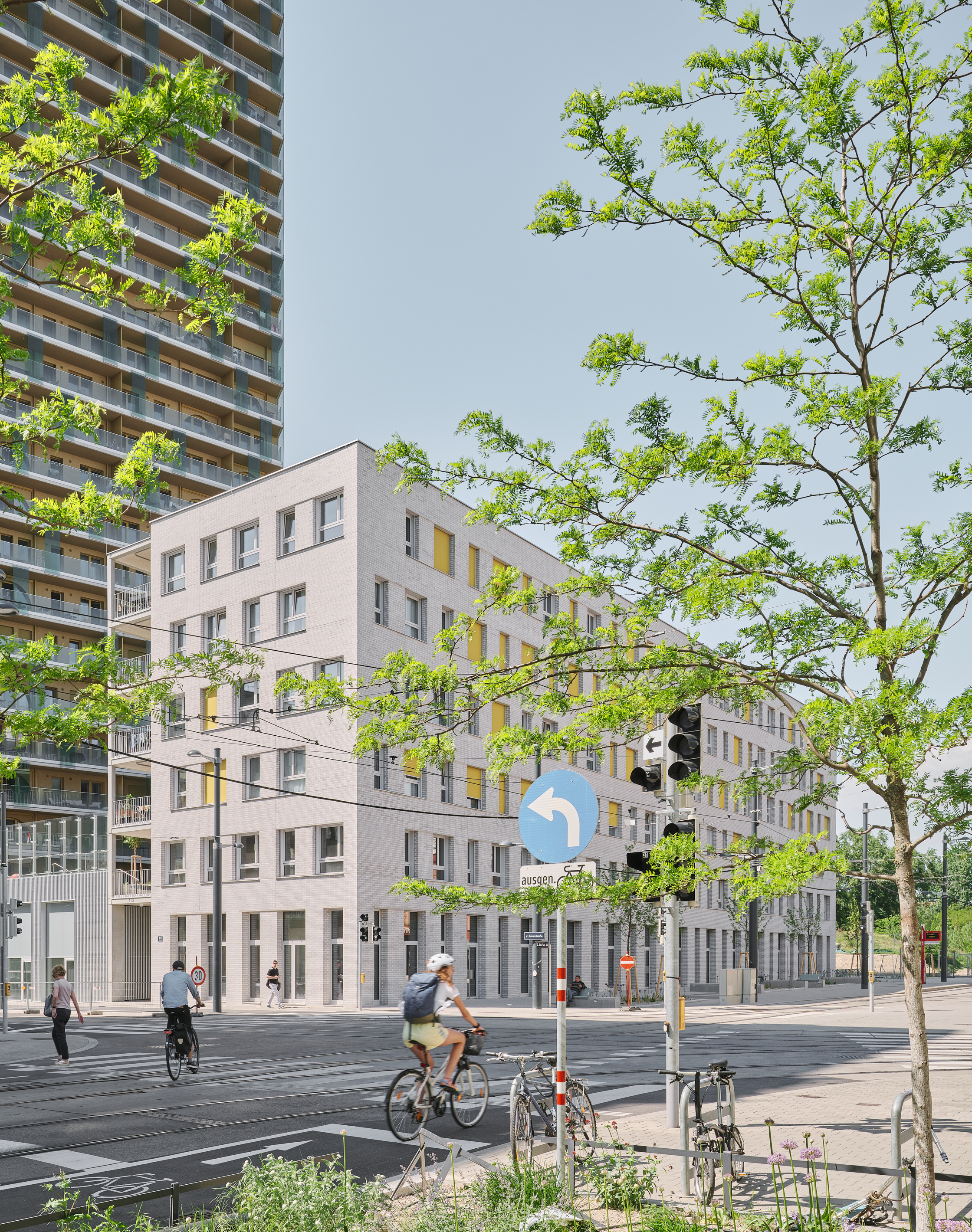 Die keramische Fassade mit ihrer langlebigen und hochwertigen Oberfläche verbindet gestalterische Eleganz mit künftiger Recylierbarkeit.