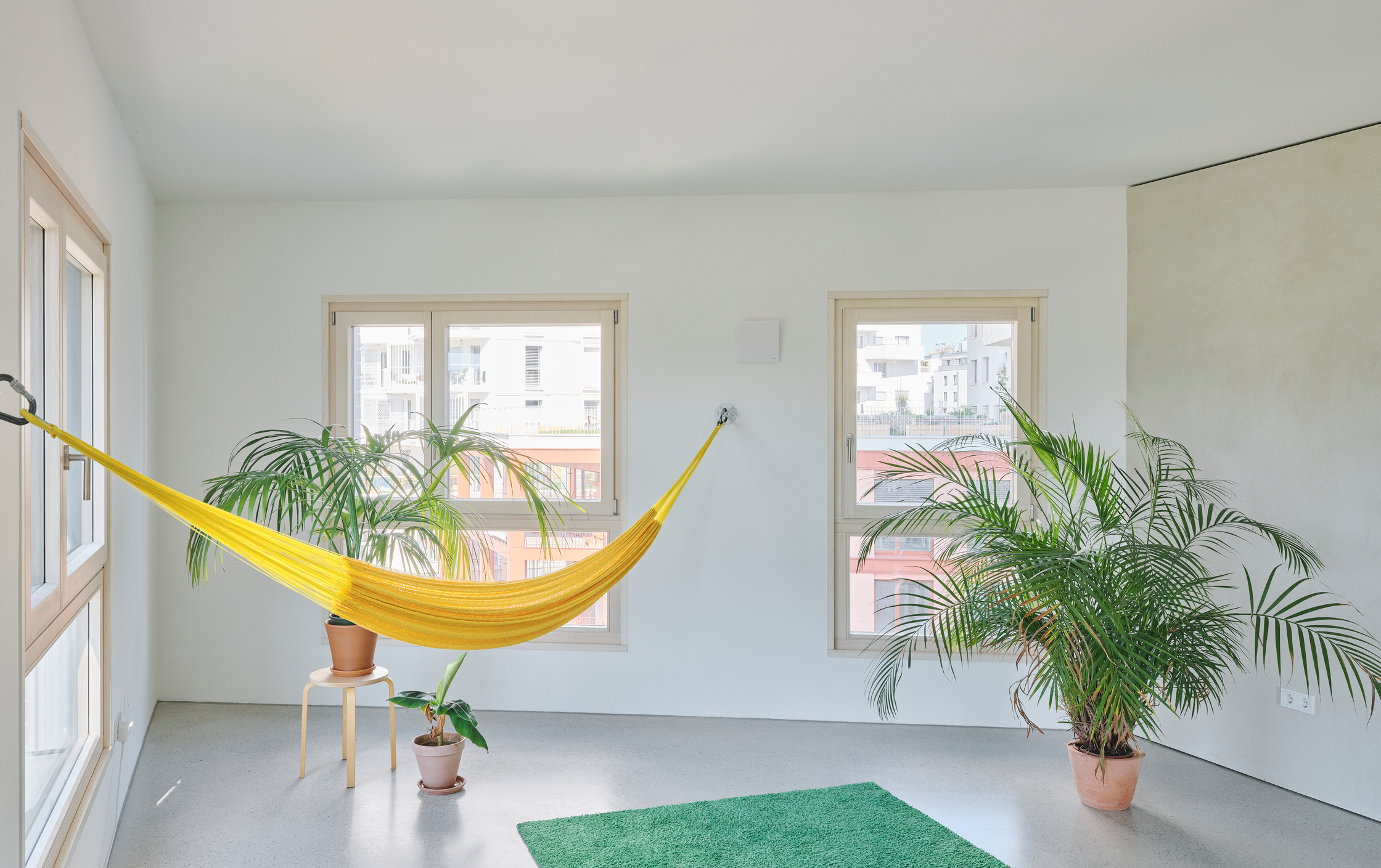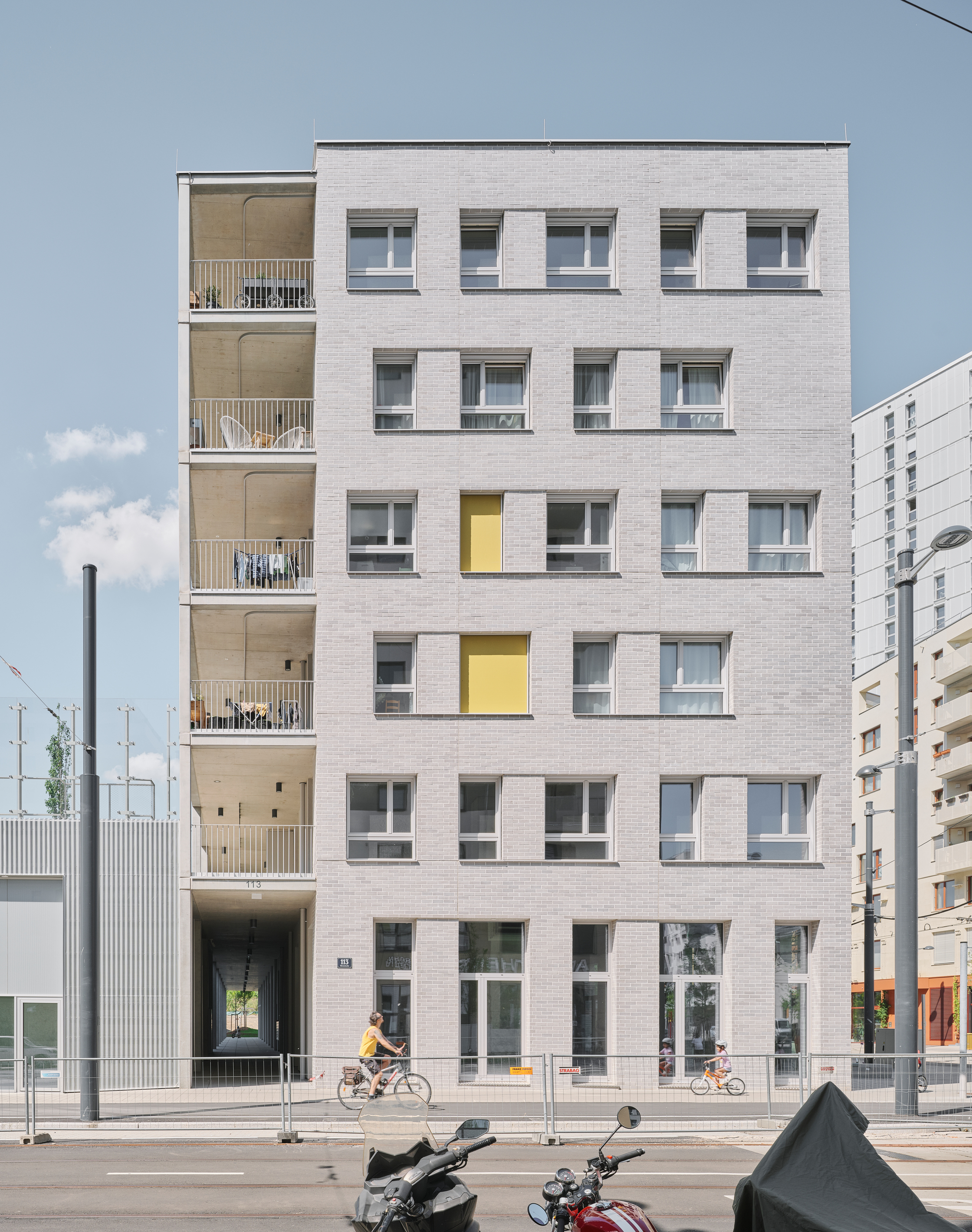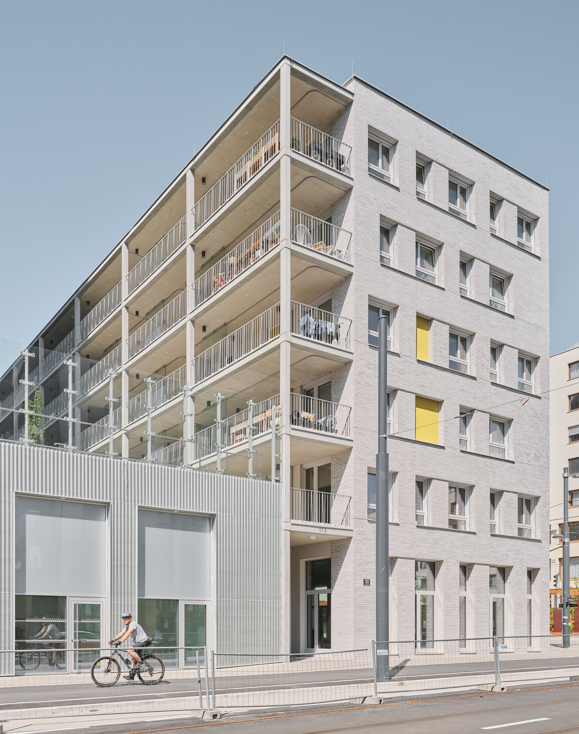 Die Stahlbetonbauweise besteht aus tragenden Außenwänden und einer Reihe von tragenden Schachtwänden in der zentralen Gebäudeachse, sodass mit minimalem Materialeinsatz eine größtmögliche Flexibilität erreicht wurde.