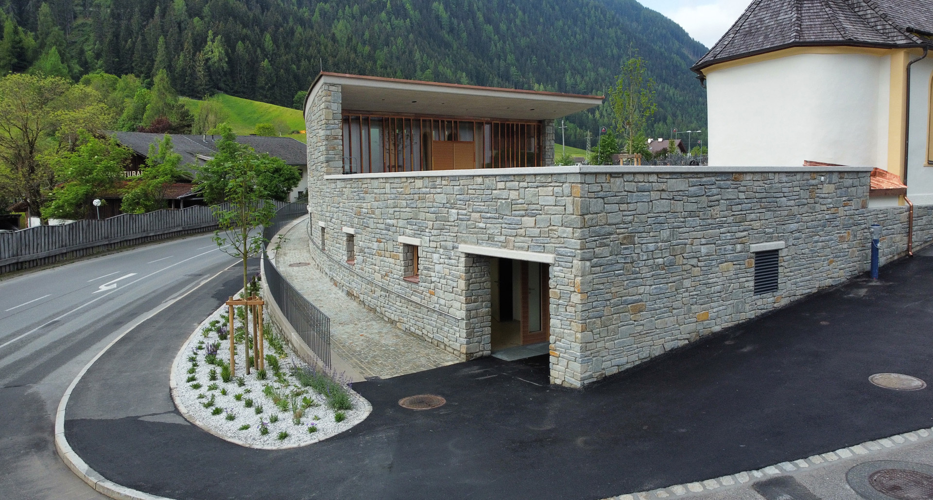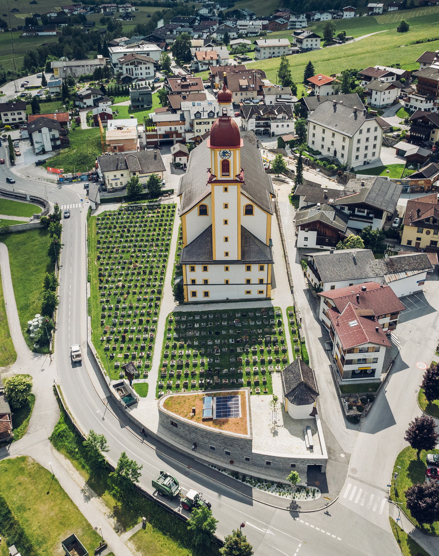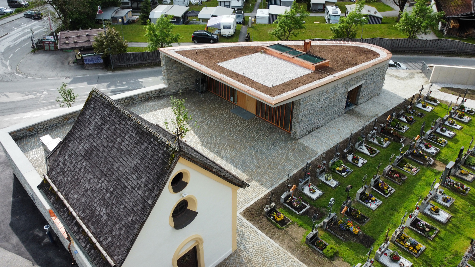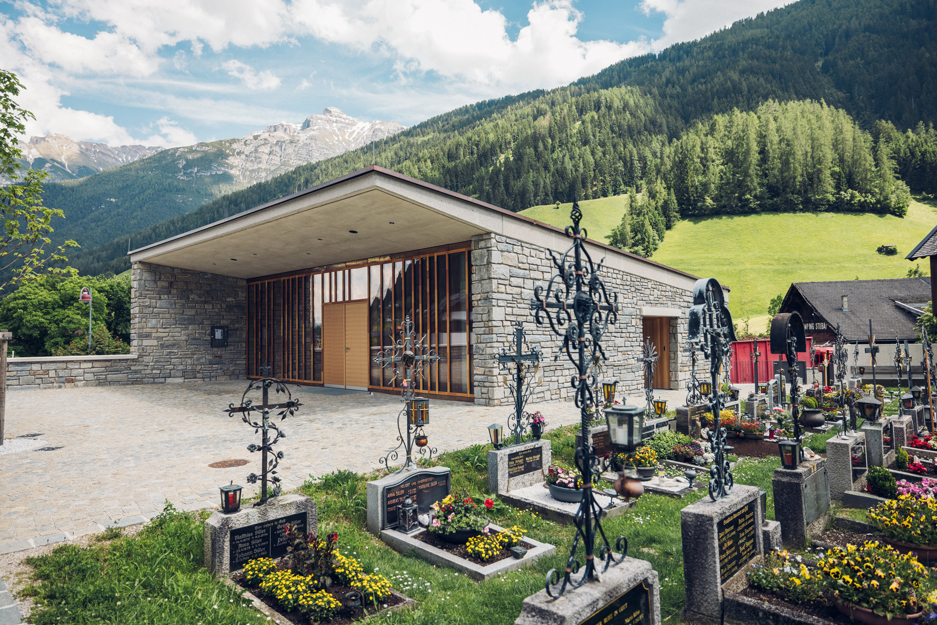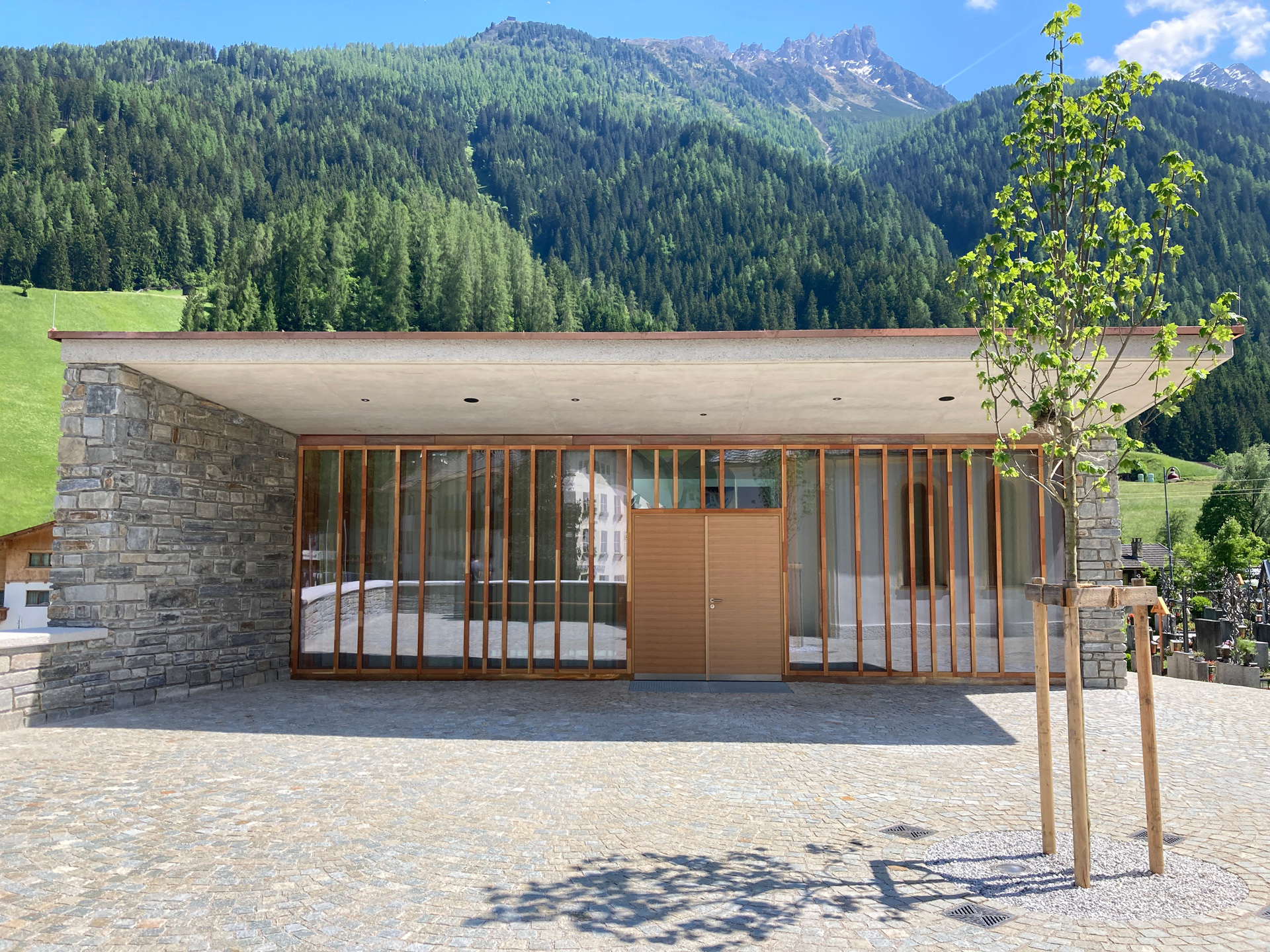 Das Projekt ist aus dem Verfahren Aufbahrungskapelle mit Verabschiedungsstube in der Gemeinde Neustift im Stubaital hervorgegangen
