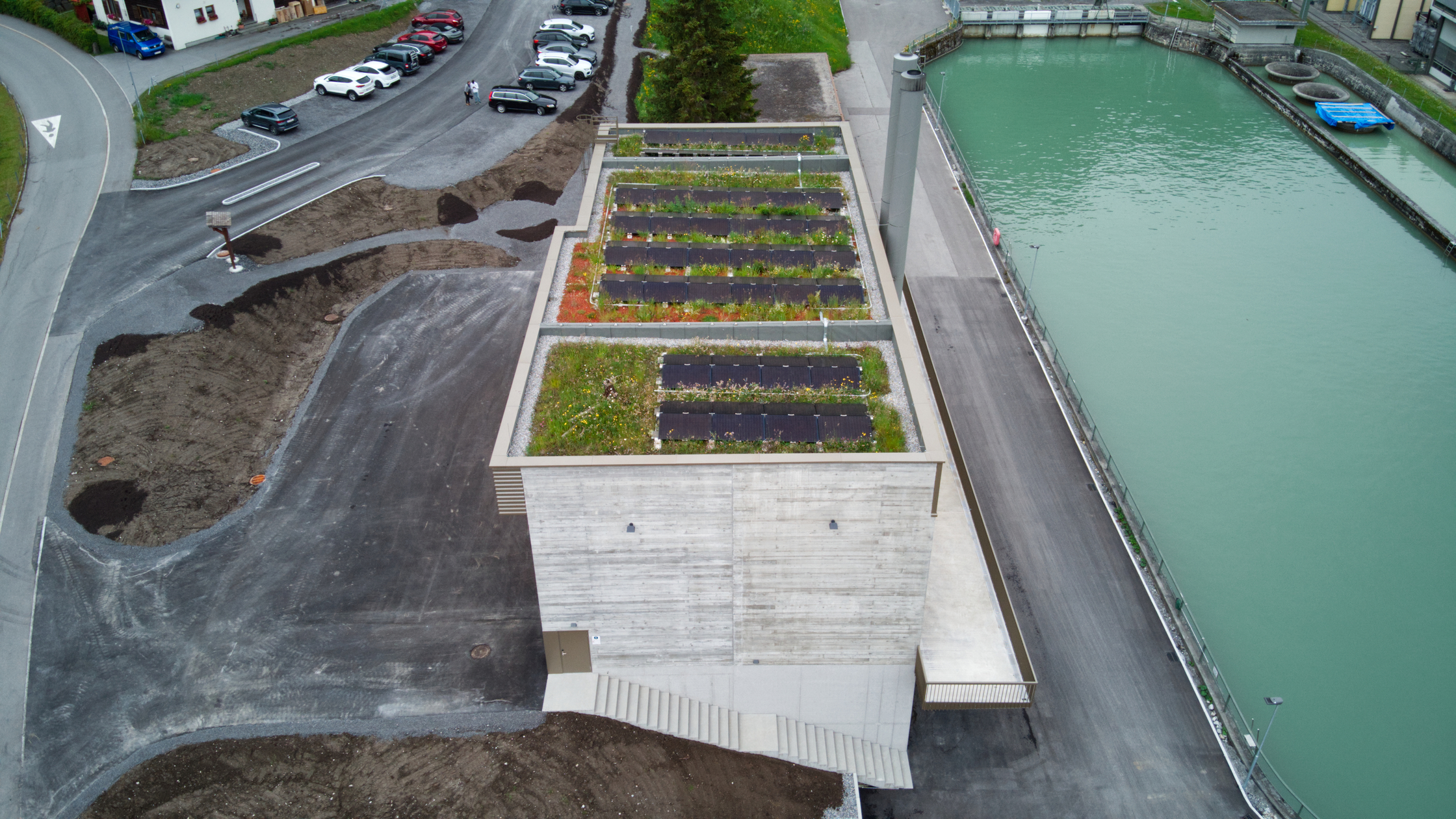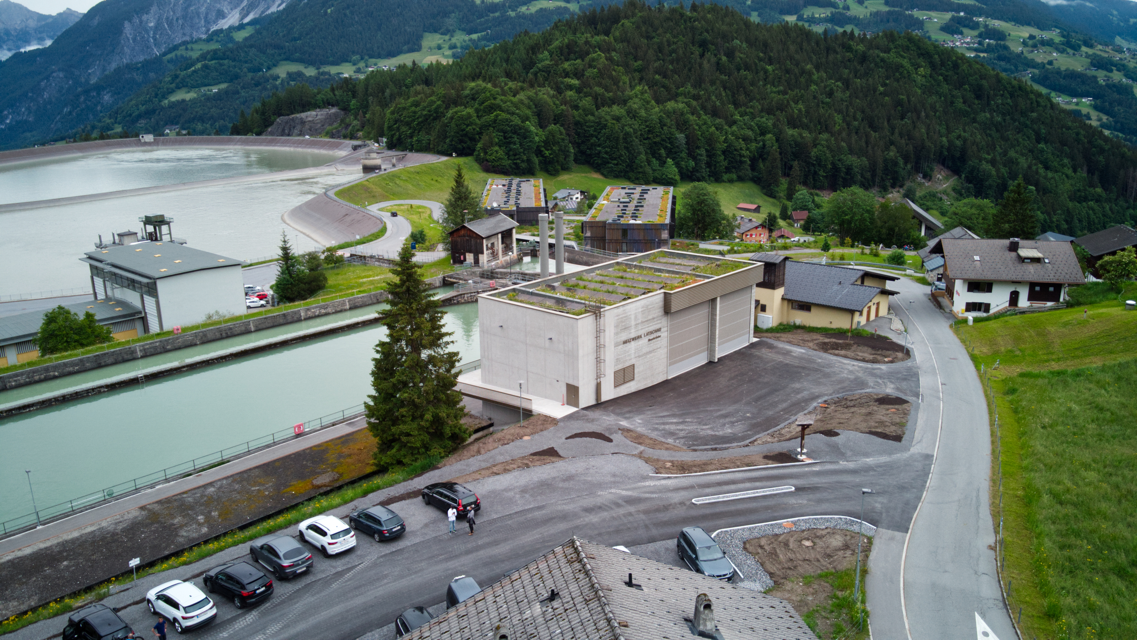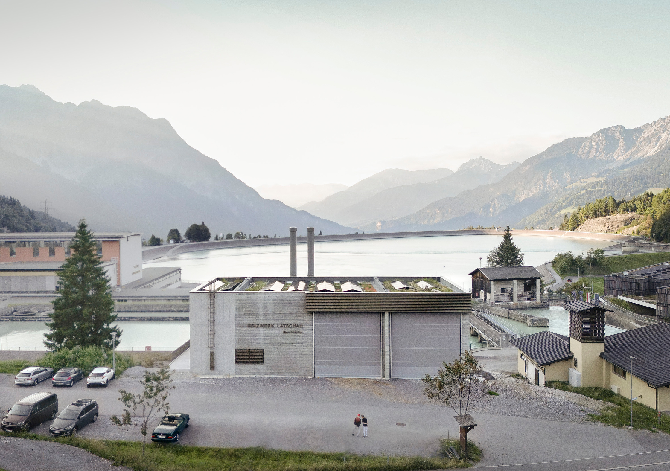 Bauwerk zur Erzeugung von Nahwärme mittels Biomasse, Nutzung der Abwärme aus dem benachbarten Pumpspeicherwerk, Kühlung für das nahegelegene Hotel mittels Free Cooling aus dem Speichersee, Photovoltaikanlage, biodiverses Gründach, Speisung eines Nahwärmenetzes an die umgebende Streusiedlung.
