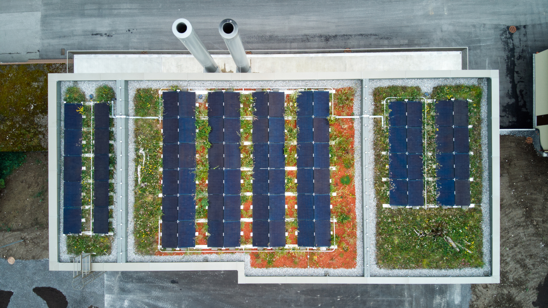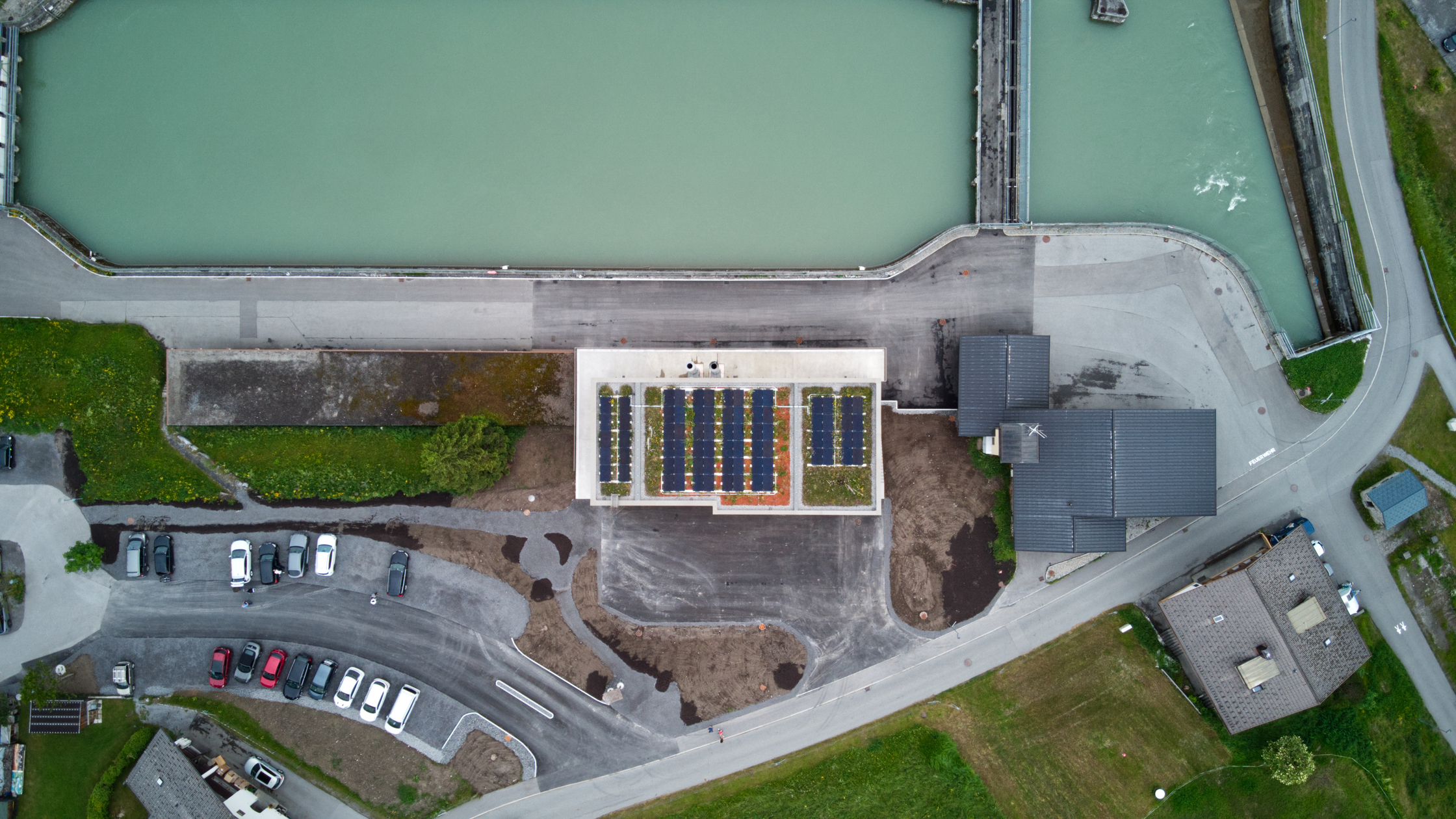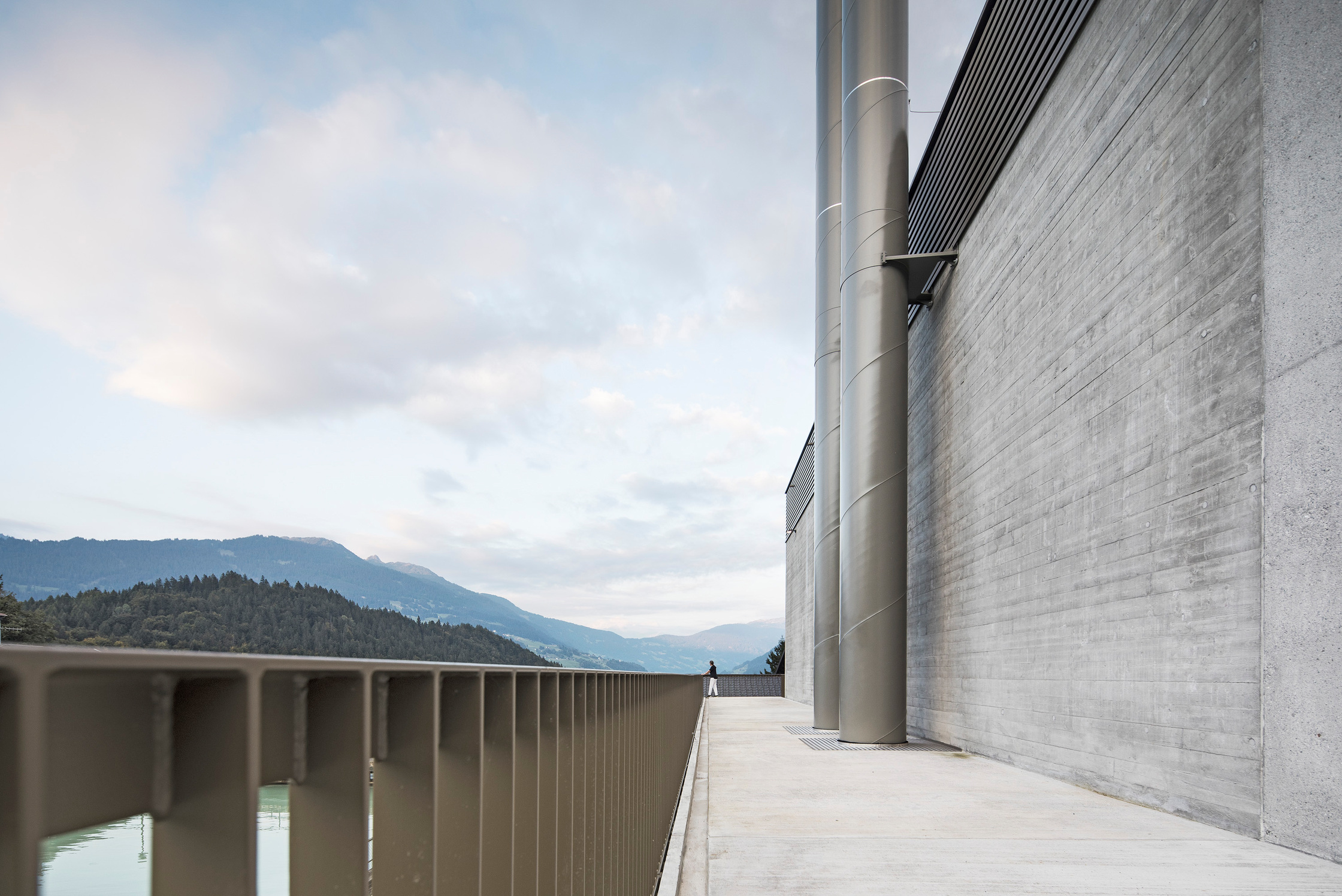 Bauwerk zur Erzeugung von Nahwärme mittels Biomasse, Nutzung der Abwärme aus dem benachbarten Pumpspeicherwerk, Kühlung für das nahegelegene Hotel mittels Free Cooling aus dem Speichersee, Photovoltaikanlage, biodiverses Gründach, Speisung eines Nahwärmenetzes an die umgebende Streusiedlung.