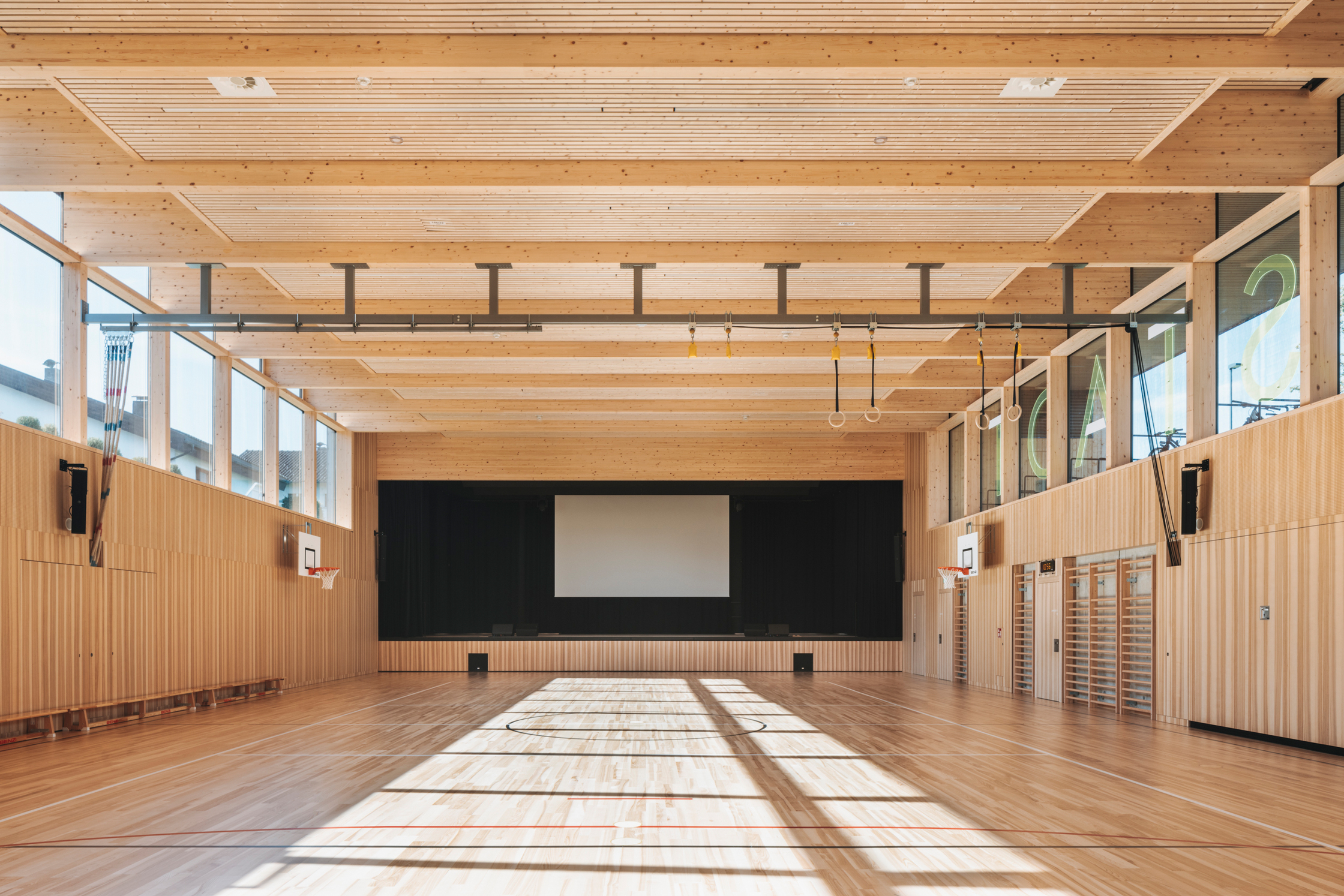 Baumeister: Dobler Baugesellschaft m.b.H., Röthis; Holzbau: Dobler Holzbau GmbH, Röhtis und LOT Holzbau GmbH & Co.KG; Heizung, Sanitär: Markus Storlz Ges.m.b.H. & CoKG, Feldkirch; Elektroinstallationen: Elektro Decker GmbH, Klaus-Weiler; Flachdach- u. Spengler: Mathis Spenglerei GmbH, Altach; Fensterbau: Hartmann Fenster GmbH, Nenzing; Tischlertüren u. Innenverglasungen: Tischlerei Telser OHG, Mals-Burgeis; Einbaumöbel Schule: Z.E. & F.Plattner GmbH, Hohenems; Einbaumöbel Vereine: Lenz-Nenning GmbH, Dornbirn; Innenausbau Holzbau: Fetz Holzbau GmbH, Egg; Holzboden: MB Michael Bischof GmbH, Hard; Sportgerät u. Ausbau Turnhalle: Sportbau Walser GmbH, Altach; Sichtestrich: Vigl & Strolz GmbH, Hirschau; Metallportale: Markus Kalb GmbH, Dornbirn; Metallbauarbeiten: Schlosserei Klocker GmbH, Dornbirn; Außenanlagen, Asphalt: Hilti & Jehle GmbH, Feldkirch; Sonnenschutz: HELLA, Abfaltersbach