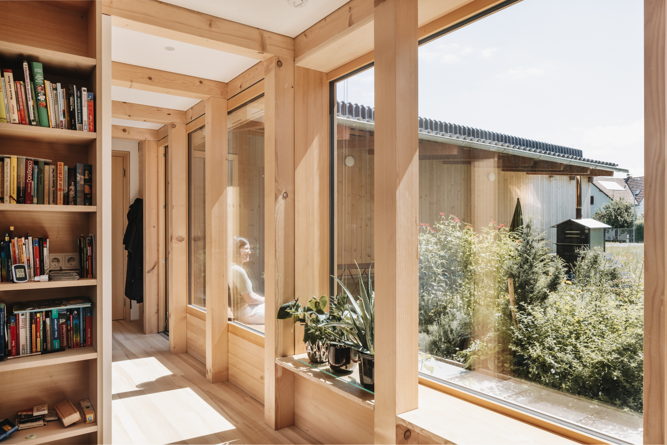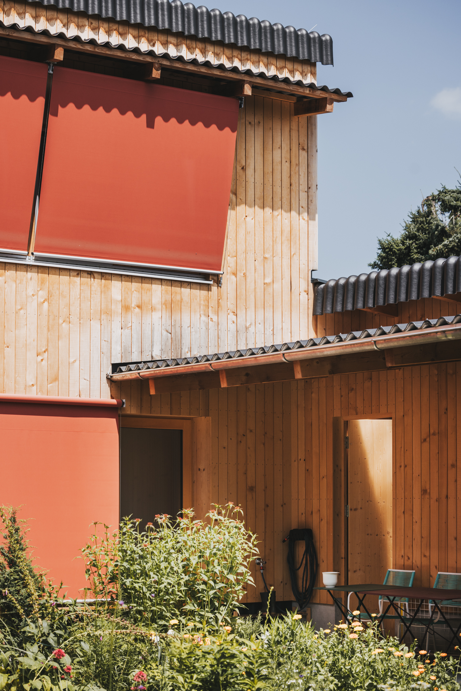 - Holzbau, Vermeidung von PVC für Fenster, Türen, Vermeidung von PVC im Innenausbau, Überwiegende Verwendung von Dämmstoffen aus nachwachsenden Rohstoffen, Überwiegende Verwendung von HFKW-freien Dämmstoffen