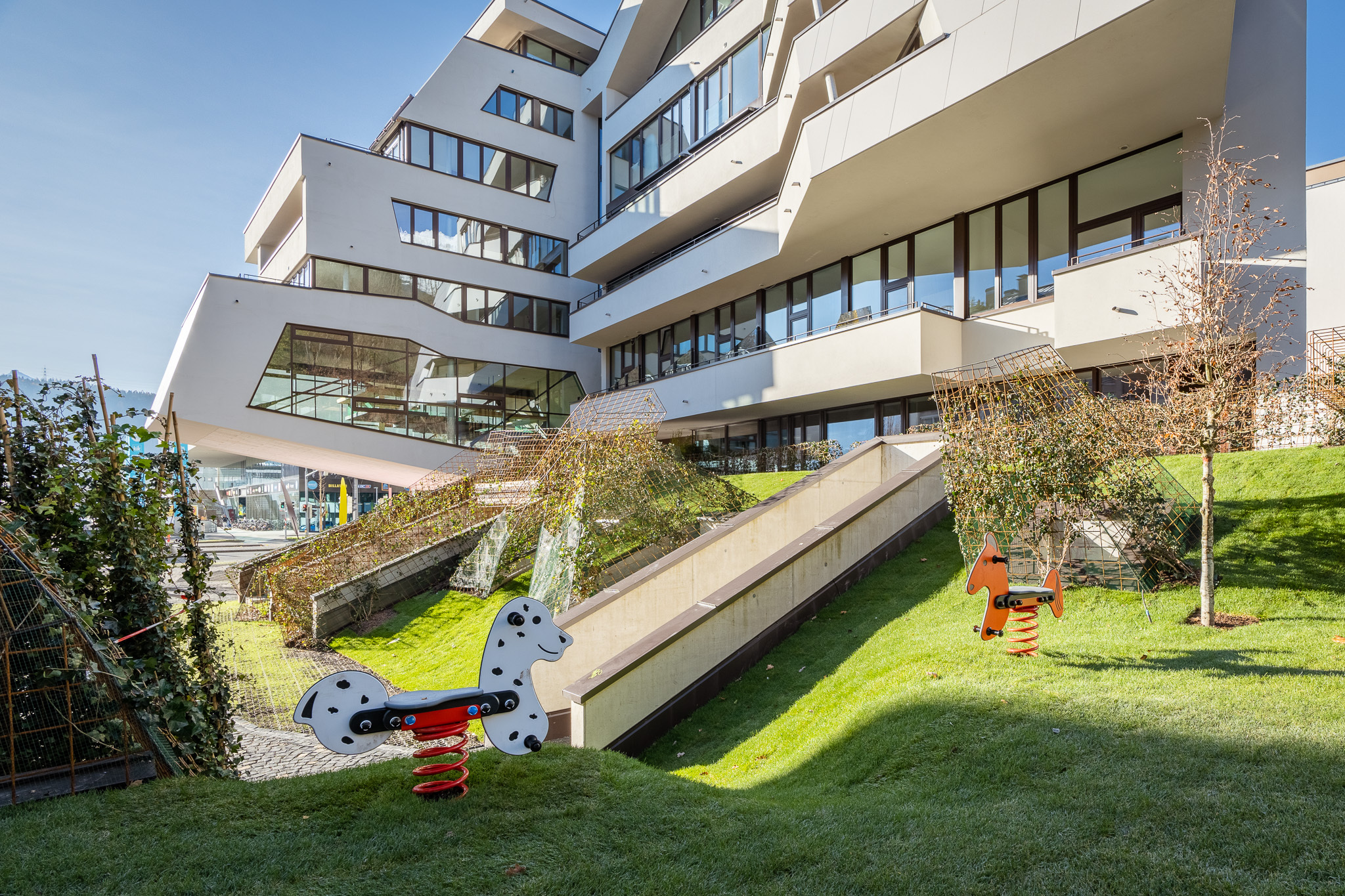 Das Callas verfügt über 62 Wohnungen, eine Tiefgarage mit 56 Stellplätzen, sowie Büroflächen im Ausmaß von ca 1400m².