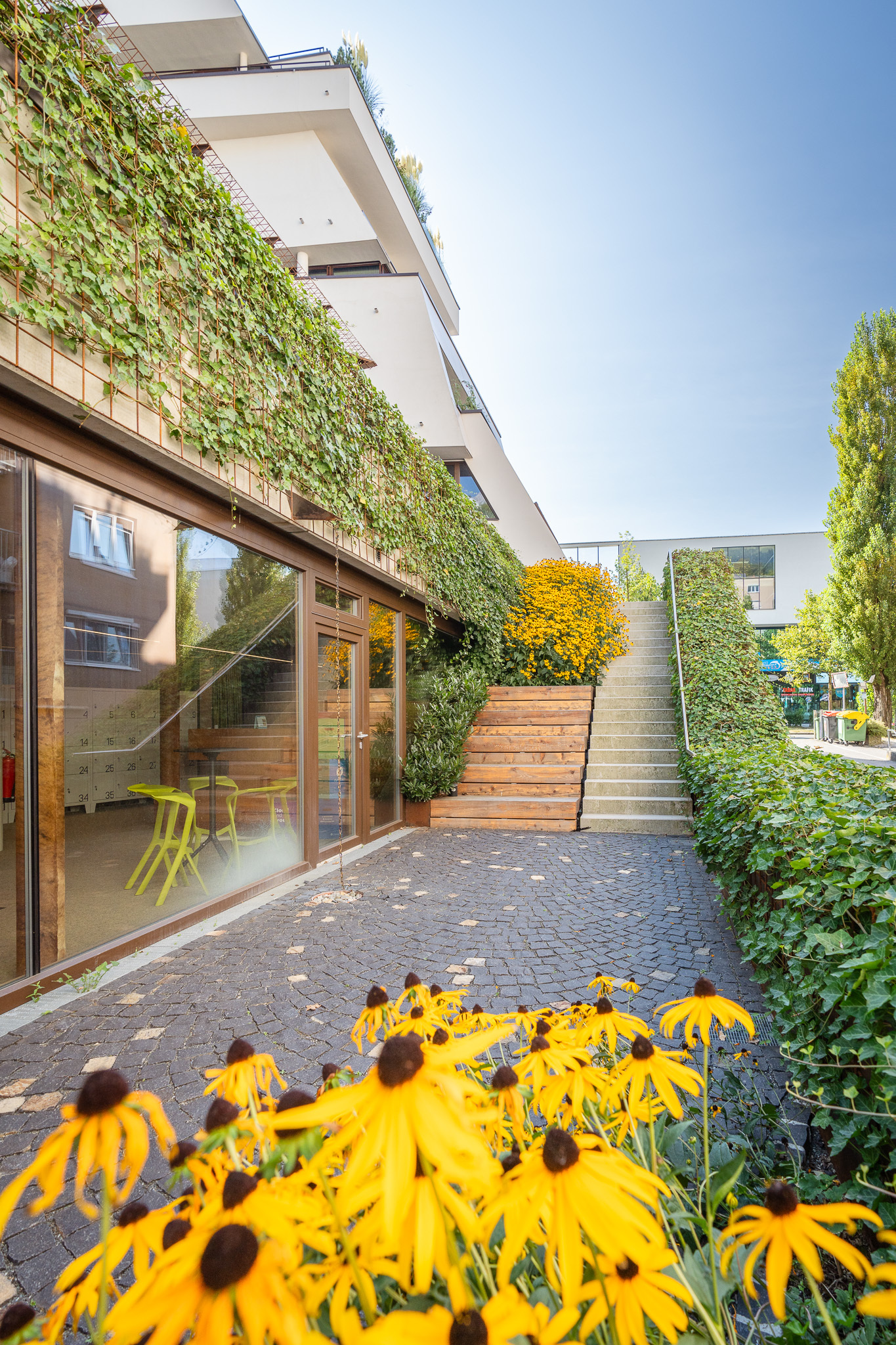 - Wohnen 41,1 kWh/m²a, Büro 75,0 kWh/m²a (Energieausweis)