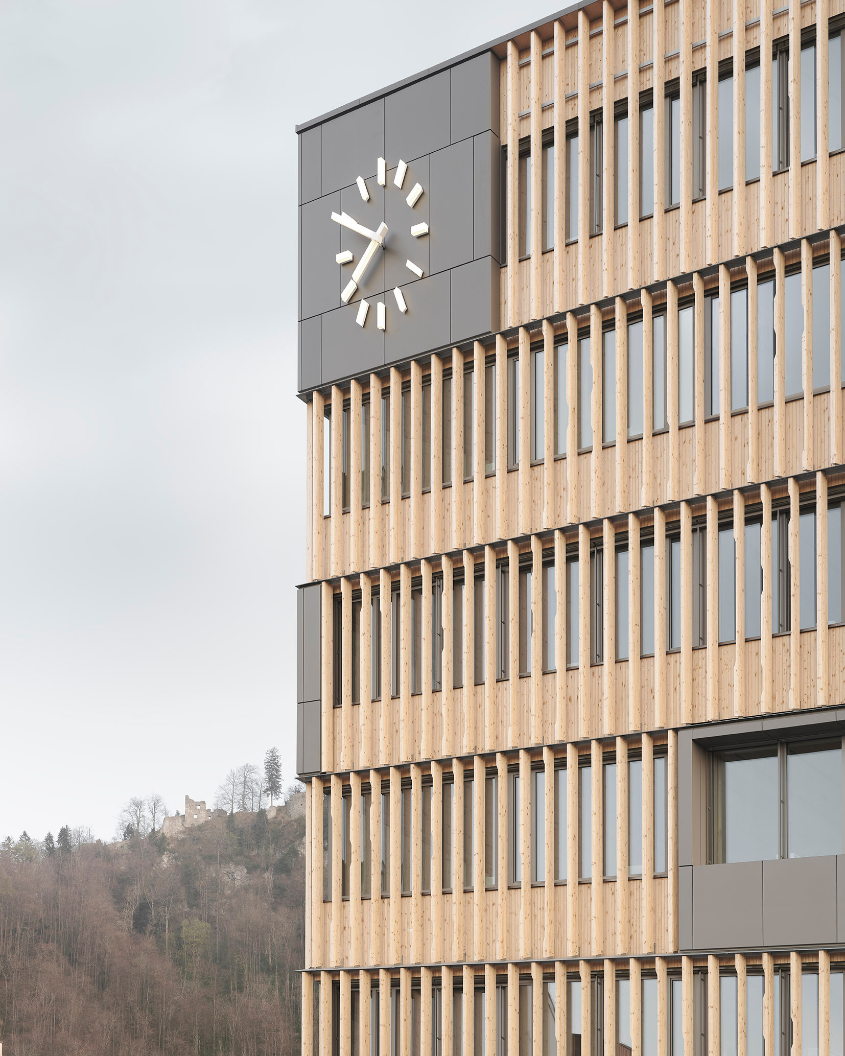 Holzbau: i+R Holzbau, Lauterach; Baumeister: Moosbrugger Bau, Lauterach; Fenster: Böhlerfenster, Wolfurt; Bauschlosser u. Metallfassade: Schlosserei Klocker, Dornbirn; Elektro u. PV: Vlotte vkw, Hohenems; Heizung-Sanitär: Strele Installationen, Dornbirn; Lüftung: Kranz Luft-Klima-Technik, Weiler; Bautischler: Lenz-Nenning, Dornbirn; Bürotrennwände: Josef Feuerstein, Nüziders; Estrich: Vigl&Strolz, Schnepfau; Holzboden: Burtscher Böden, Nüziders; Verglasungen: Schnetzer Metallhandwerk, Hohenems; Schwarzdecker-Spengler: Mathis Spenglerei, Altach; Portalschlosser: Glas Müller, Frastanz; Dachverglasung: Manahl Metallbau, Bludenz-Bings; Trockenbau: Raumwerk, Wolfurt; Fliesen: Felder, Lustenau; Blitzschutz: Prock, Dornbirn; Gerüst: Farben Kobold, Frastanz; Maler: Werner Bösch, Höchst; Fassadenuhr: Turmuhren Rauscher, Regensburg (D); Einbaumöblierung: E&F Plattner, Hohenems