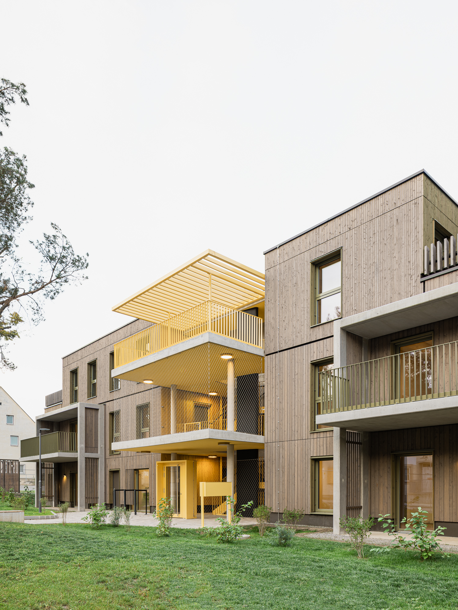 - Holzbau, Mischbau, Vermeidung von PVC für Fenster, Türen, Vermeidung von PVC im Innenausbau, Überwiegende Verwendung von HFKW-freien Dämmstoffen