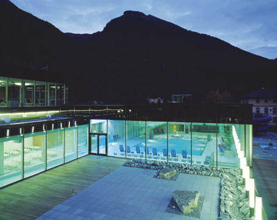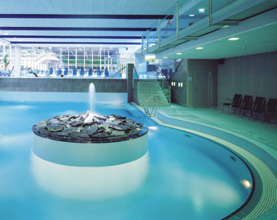 Die unersättlichen Bild-Ingenieure der Erlebnis-Thermalisierung zauberten das Thema „Kristall“ aus dem Hut. Ein „beleuchteter Kristall“ auf einer kleinen Insel des frei geformten Erlebnisbeckens und „Felsen und Kristallkunstwerke“ sind Großnippes zur Erzeugung einer „Glitzertraumwelt“. Eine interaktive, themenspezifische, mit multimedialen Effekten auszustattende Rutsche sollte zum neuen Symbol des Bades werden. Der Entspannungsbereich sollte einen „Musikraum mit Farb- und Dufteffekten“ erhalten, themenspezifisch eingeblasen durch die Lüftungsanlage. Keine Rede von strukturellen Überlegungen, bei denen die Architektur selbst Identität stiften kann. Die Fachpreisrichter Gerhard Mitterberger (Vorsitz) und Ernst Fuchs verwarfen diese Bestandteile der Ausschreibung.