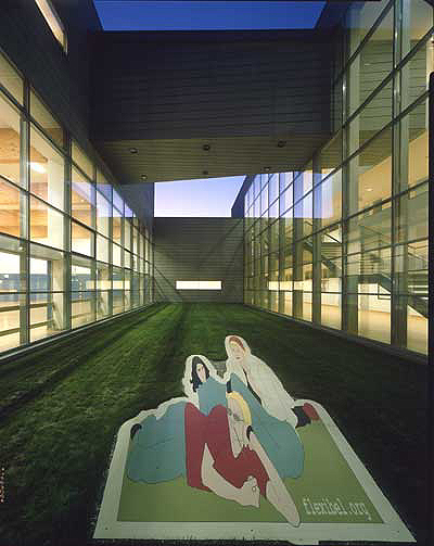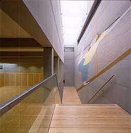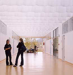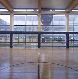 Blick vom Turnsaal durch den Patio in die hak/hasch