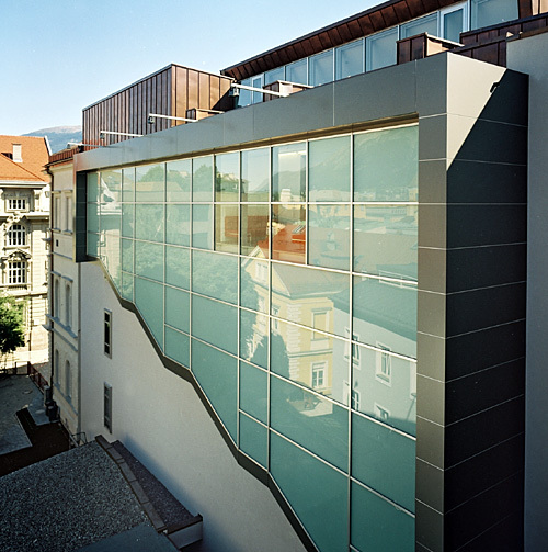 Im Stadtraum präsentiert sich das Museum als hochaufragender, nahezu wehrhaft wirkender Monolith, dessen Gliederung sich auf unterschiedliche Höhen der Dachsaumkanten, auf einen einzigen Rücksprung und auf wenige großformatige Fenster beschränkt, die ohne von außen erkennbare Logik gesetzt wurden. Schon hier zeigt sich das Können des Architekten. Er treibt ein subtiles Wechselspiel zwischen Öffnen und Verbergen, das neugierig macht.