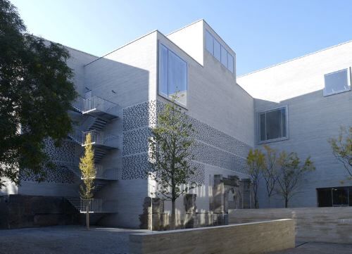 Das neue Diözesanmuseum erhebt sich wie eine Burg zwischen Kolumba-, Brücken-, Ludwig- und Minoritenstrasse – eine Zitadelle, eine Kasbah? Aber wehrhaft ist es nicht. Das durchbrochene Mauerwerk erinnert an die kunstvoll ornamentierten Mashrabiya der arabischen Architektur. Es umfliesst den das Grabungsfeld fassenden, über trapezförmigem Grundriss errichteten Baukörper. Um die Ecken herumgeführt, weicht es die harten Kanten auf, lockert die Mauer, nimmt ihr die Schwere über den spätgotischen Rudimenten und Gottfried Böhms in den 1950er-Jahren erbauten Kirche (siehe «Trümmermadonna»). Der Oberfläche eignet eine stoffliche Plastizität, eine optische Weichheit, die sich – mit den Augen abgetastet – samten anfühlt. Hoch liegende, seitliche Oberlichter in den Türmen brechen das Mauerwerk auf – eine Referenz an die kriegsversehrte Kirche (Bilder 5, 6).