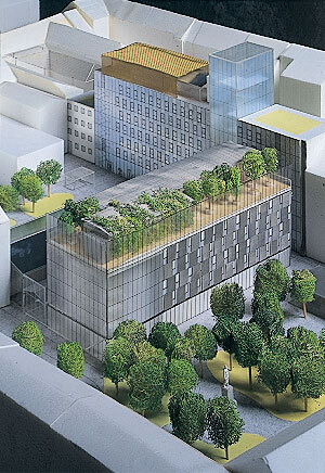 Perraults Lösung für diese Anforderungen galt als die städtebaulich sensibelste, vor allem war sein Entwurf der einzige, der den Baukörper verstärkt in die Höhe und nicht in die Breite entwickelte. Seitens der Errichtergesellschaft BOE wurde Perrault ein ortskundiges Gesamtplanungsbüro (Achammer-Tritthart & Partner) zur Seite gestellt, offiziell um die wirtschaftliche Umsetzung der Planung zu gewährleisten. Perrault gilt als ein Architekt, dem nicht Materialperfektionismus in Details, sondern architektonische Gesamtzusammenhänge wichtig sind - und genau das hat er mit seinem Entwurf bewiesen.