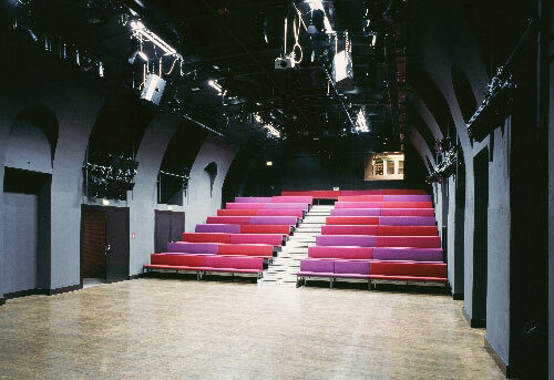Zuerst war ein Standort in Pradl vorgesehen, dann wurde dieser Raum für eine junge, kontroverse Szene bewusst ins Zentrum gesetzt. Im Hof hinter einer banalen Hauszeile formuliert das Oktogon eine autonome, widerständige Geste, deren Höhe und Prägnanz zu den Monumenten der Nachbarschaft - Jesuitenkirche, Theologische Fakultät, Hofkirche - durchaus in Konkurrenz tritt. Der erratische Block mit dem Mantel aus grauen Lecca-Gisoton-Steinen und dem Traggerüst aus Beton ist im Erdgeschoss, dem Foyer-Café, an vier Seiten zum Umraum geöffnet. Der Theaterraum darüber, introvertiert und zentriert mit zwei Etagen umlaufender Galerien, aktualisiert die klassische Shakespearebühne. Das „Theater im Turm“ mit prononciertem Kabarett-, Rock- und Jazzprogramm wurde 2001 nach Plänen von Reinhardt Honold erweitert: Mehrzweckraum im Souterrain, große Durchbrüche im Foyer, extensive Kontinuität zum Platz, Kinderzone am Dach. (aus: Bauen in Tirol seit 1980, Otto Kapfinger)