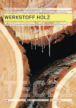 Die Verunsicherung, die diese Mehrdeutigkeit auslöst, ist bis heute spürbar. Holz steht für das Urtümliche, Traditionelle, Natürliche, aber auch für kunstvolle Fügung und perfekte Detaillierung. Es gilt als «ehrliches» Material, bei dem sich Form und Konstruktion gegenseitig bedingen; in einer Zeit des formalen Reichtums – und zuweilen auch der Beliebigkeit – ist die Versuchung, die Form durch die Konstruktion gleichsam legitimieren zu wollen, zweifellos gross. Gleichzeitig ist Holz aber auch das Material der Anstriche und Abdeckleisten, die jeder «unverfälschten» formalen Radikalität zuwiderlaufen; in dieser Hinsicht ist es ein Material der Kompromisse. Seine Interpretationen sind widersprüchlich, häufig emotional bedingt und meist moralisch konnotiert. In den letzten Jahren ist ein zusätzlicher Aspekt hinzugekommen: Als nachwachsender Rohstoff, der zudem CO2 bindet, wurde Holz als ökologisch sinnvolles Baumaterial wiederentdeckt. Industrielle Holzwerkstoffe mit homogenisierten Materialeigenschaften, Fortschritte im Bereich mehrgeschossiger Konstruktionen und neue Oberflächenbehandlungen bieten fast unbeschränkte Einsatzmöglichkeiten, die Holz zu einer attraktiven Alternative zu Stahl oder Beton machen. Doch auch bei diesem scheinbar rationalen Umdenken macht sich eine moralische Komponente bemerkbar – etwa, wenn Holz in «ökologischen» Bauten trotz vergleichsweise schlechter Wärmespeicherkapazität als thermischer Puffer eingesetzt wird.