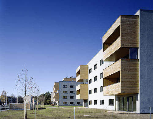 Bei den »Green Offices« handelt es sich um ein Bürogebäude, das Raum für 35 Arbeitsplätze bietet. Es ist das erste Bürogebäude in der Schweiz, das nach dem Minergie-P Eco-Standard errichtet wurde, bei dem ein kleinstmöglicher Energieverbrauch mit dem Streben nach vollständiger Harmonie mit der Umwelt verbunden ist. Mindestens so interessant wie das architektonische Vorgehen sind also die soziokulturellen Herausforderungen. Die Grundidee war, Flächen an Unternehmen oder Personen zu vermieten, deren Aktivitäten direkt oder indirekt mit Ökologie zu tun haben. Die Herausforderung bestand darin, einen Arbeitsplatz zu schaffen, in dem Architekten, Landschaftsarchitekten, Bauingenieure, Grafiker et cetera sich versammeln und austauschen können, statt isoliert zu bleiben. Umgesetzt wurde dies mit drei völlig offen gehaltenen Geschossen, die im Gebäudekern über ein durchgehend offenes Atrium belichtet werden, in dem sich eine Treppe befindet. Außer der Eingangstür zum Gebäude gibt es keine Türen. Einzelne Bereiche können durch 1,60 Meter hohe Stellwände abgetrennt werden. Was die technischen Installationen anbelangt, ist jedes Quadrat des Gebäudes individuell an die kontrollierte Lüftung angeschlossen, wogegen an den Decken ein Kabelsystem angebracht ist, was eine flexible Nutzung der Arbeitsplätze ermöglicht. Um alles zu dynamisieren, was mit Bauen und nachhaltiger Entwicklung zusammenhängt, dient eine geräumige Cafeteria im Erdgeschoss auch als Konferenzraum. Außerdem verfügt jedes Stockwerk über einen fest abgetrennten Besprechungsraum.
