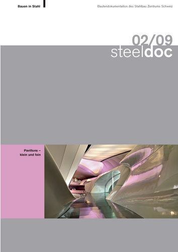 Der digitale Prozess des Entwerfens lieferte die Grundlage für die dreidimensionalen Werkzeichnungen und für die Bearbeitung der Rohre mittels computergesteuerter Maschinen. Bei der Montage der Elemente in der Werkhalle und vor Ort kam das Raumgitter als Schablone erneut zum Einsatz. Handarbeit erforderte lediglich das Vernähen der Netzbahnen aus Edelstahl, welche als Hülle zwischen Dach und Bodenplatte gespannt wurden. Diese filigrane, fast unsichtbare Membran hüllt die in Grünund Weisstönen gestrichene Baumstruktur in eine Art Spinnengewebe, das wiederum den Bezug zur umgebenden Natur unterstützt.