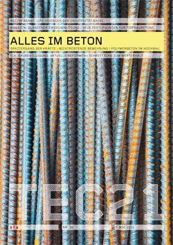 Mineralguss – auch Polymerbeton genannt – zeigt im Artikel «Polymerbeton im Hochbau» (S. 33ff.) eine weitere interessante Facette von Beton: Statt Zement nehme man ein Epoxydharz und mische dieses mit kleinkörnigen Quarz-Zuschlagsstoffen. Dieses Gemisch lässt sich in vielfältige und dünnwandige Formen abfüllen. Der Baustoff ist relativ jung. Die chemische Industrie stellte erst ab 1975 kalt härtende Reaktionsharzsysteme zur Verfügung, welche die Herstellung eines polymergebundenen Mineralgusses für hochpräzise Maschinengestelle ermöglichte. Es folgten Untersuchungen von möglichen Reaktionsharzen. Aufgrund der nachweisbaren Vorteile des Werkstoffes entwickelte sich ab den 1990er-Jahren eine leistungsfähige Mineralgussindustrie für den Maschinenbau. Weitere Anwenderindustrien sind die Medizin-, Abwasser-, Druck- und Werkzeugtechnik und die Kraft-, Optik-, Holzbearbeitungs-, Verpackungs- und Textilmaschinen. Grund genug, die Möglichkeiten im Hochbau in einer Bachelor-Abschlussarbeit zu analysieren. Beton ist und bleibt durch solch interessante Fortschritte ein Baustoff der Zukunft.