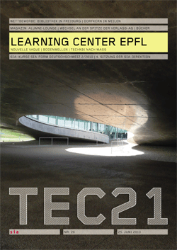 Das im Mai offiziell eingeweihte Learning Center der EPFL hat nicht nur eine gewellte Form, es schlägt seit dem 2004 durchgeführten internationalen Wettbewerb (vgl. TEC21 1-2/2005) auch sonst immer wieder Wellen. Nach Bekanntgabe des Siegerprojekts von Sanaa gab es Stimmen, die bedauerten, dass kein Schweizer Büro das Prestige-Objekt entwerfen solle. Als das Budget von 60 auf 110 Millionen Franken erhöht wurde – wobei Sponsoren aus der Privatwirtschaft die zusätzlichen Kosten übernahmen –, sprach man von Masslosigkeit und Amerikanisierung. Während der Realisierungsphase schliesslich sorgte die aufwendige Bauweise für Irritationen. Der Boden des 166.5 m × 121.5 m grossen, eingeschossigen Gebäudes wurde fugenlos betoniert, was ein kontinuierliches Giessen über zwei Wochen hinweg bedeutete. Er ist nicht eben, sondern wirft zwei grosse Blasen, die sich als flache Schalenkonstruktionen über den Baugrund erheben; die 70 vorgespannten Kabel, die zur Stabilisierung dieser Konstruktionen nötig sind, führen bei der Betondecke des Untergeschosses zu einer statischen Höhe bis zu 80 cm (vgl. «Bodenwellen» S. 23); trotz diesen Verstärkungen konnte auf zwei Stützen unter der grösseren Schale nicht verzichtet werden.