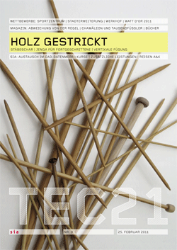 [1] Mit dem Konzept, das vom Ingenieur Vladimir Suchov entwickelte und für unzählige Stahlkonstruktionen angewandte Prinzip des Hyperboloids auf das Material Holz zu übertragen, gewannen 2003 der Karlsruher Künstler Daniel Roth und der Architekt Alexander Kohm den Wettbewerb um die Kunst am Bau der Technischen Berufsschule Zürich (Stücheli Architekten, Wettbewerb 1996). 2004 wurde der Aussichtsturm auf der Dachterrasse des Schulhauses am Sihlquai, unweit des Hauptbahnhofes Zürich, errichtet; vgl. Daniel Engler, «Die sparsame Konstruktion», in tec 21 41/2004, S. 6–13