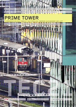 Diese Möglichkeit, Fenster zu öffnen, ist ein in Hochhäusern seltener Komfort, der indes auch die feuerpolizeilich vorgeschriebene Möglichkeit der Entrauchung nach einem Brandfall unterstützt (vgl. Kasten S. 34). Damit ist die Stadt im Prime Tower nicht nur visuell, sondern auch mit ihren Geräuschen präsent. Gleichzeitig bildet sich das Innenleben des Gebäudes nach aussen ab: Bürotrennwände, offene und geschlossene Fenster, der innen liegende Sonnenschutz und die Beleuchtung machen es jetzt, nachdem die ersten Bürogeschosse bezogen sind, weithin sichtbar.