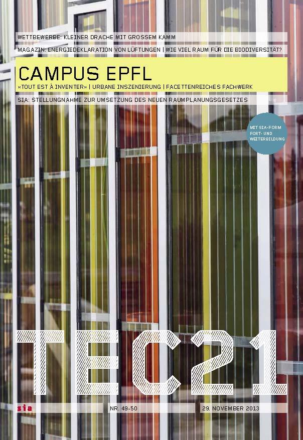 [03] Vgl. «Sieben Projektaufträge für die ETH L in Dorigny», in: Werk, 57 (1970), H. 10, S. 646–661, und Claude Grosgurin: «Die baulichen Aspekte einer Neuanlage der ETH Lausanne in Ecublens (erste Etappe) und Ausbau der ETH Lausanne», in: SBZ, 91 (1973), H. 13, S. 323–324