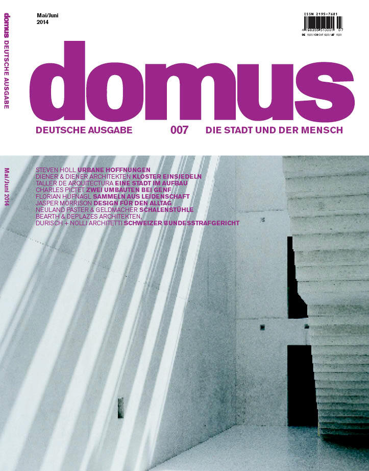 Wir haben in dieser Ausgabe Beispiele für die Verbindung von Alt und Neu zusammengestellt und veranschaulichen mit ihnen konkrete Perspektiven für den Umgang mit dem kulturellen Archiv. In der Architektur zeigt sich dieser Dialog mit der Geschichte insbesondere bei Umbauten und Sanierungen, Revitalisierungen und Ergänzungen – bedachte Lösungen auf diesem Feld zählen mit zu den dringendsten Bauaufgaben unserer Tage. Wie entscheidend es ist, Alt und Neu auf sensible Weise zusammenzuführen, zeigen die Schweizer Architekten Bearth & Deplazes aus Chur gemeinsam mit Durisch Nolli aus Lugano. Sie haben den neoklassizistischen Bau der früheren Handelsschule in Bellinzona saniert und durch einen rückwärtigen Neubau ergänzt. Ihr Entwurf für den kürzlich bezogenen neuen Sitz des Bundesstrafgerichts der Schweiz kombiniert Alt und Neu auf Augenhöhe und ist von einem gegenseitigen Respekt getragen, der keine Seite unterordnet. Auf herkömmliche Pathosformeln haben die Architekten bewusst verzichtet und stattdessen ein nüchternes und eindrucksvolles Ensemble geschaffen. Hubertus Adam stellt Ihnen dieses genauer vor – der Fotograf Florian Holzherr hält es exklusiv für die deutsche Domus in seinen Aufnahmen fest. Auch den Architekten Diener & Diener ist es gelungen, das jahrhundertealte Benediktinerkloster Einsiedeln durch ihre geschickten Interventionen so zu erweitern, dass seine Räumlichkeiten an aktuelle Bedürfnisse angepasst werden und die historische Anlage behutsam durch zeitgenössische Anbauten ergänzt wird. Der Schweizer Architekt Charles Pictet wiederum zeigt mit seinen Umbauten auf dem Land bei Genf, dass sich auch in alten Kornspeichern und Scheunen vorzüglich leben und arbeiten lässt, wobei der Charakter der historischen Gemäuer keineswegs störend ist, sondern einen besonderen Charme ausmacht.