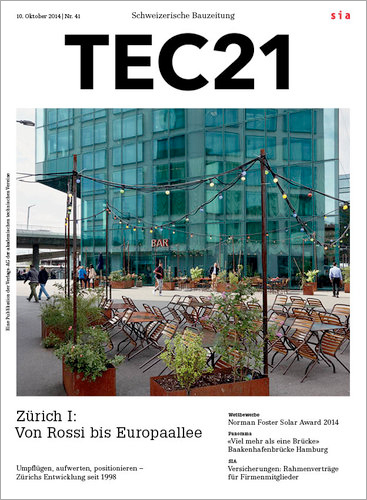 Zürich gehört zu den Städten, deren Ränder, was Gegenwartsarchitektur und städtebauliche Entwicklungen angeht, unendlich interessanter sind als ihre saturierte Innenstadt. Sieht man vom 2014 wiedereröffneten Sechseläutenplatz ab, bleiben die Veränderungen im musealisierten Zentrum bescheiden. Der momentan in der Altstadt aufgestellte Hafenkran – ein Veteran aus dem real existierenden DDR-Sozialismus der Ostseestadt Rostock – hat als Kunstaktion unfreiwillig den Charakter einer pädagogischen Lockerungsübung (vgl. Abb. S. 27). Umso erstaunlicher ist, was der Sechseläutenplatz als leere, richtungsneutral begehbare Fläche zwischen Bellevue und Opernhaus leistet. Denn im Allgemeinen tut sich Zürich mit der Ausrüstung seines öffentlichen Raums schwer. Auf der parallel zum Sechseläutenplatz sanierten Bahnhofstrasse erwecken neue Beleuchtungskandelaber und Sitzbänke den Eindruck, als wollte man den in regelmässigen Abständen ausgeraubten Uhrengeschäften ein Gefühl der Sicherheit vermitteln. Massiv und trostlos, scheint diese Gestaltung um jeden Preis den Eindruck eines modischen Strassenmobiliars vermeiden zu wollen. Im Gegensatz zum Sechseläutenplatz, den ein Belag aus Valser Granit und zwei zeitgeistige Pavillons veredeln, triumphieren auf der internationalen Luxusmeile die Tiefbauingenieure.