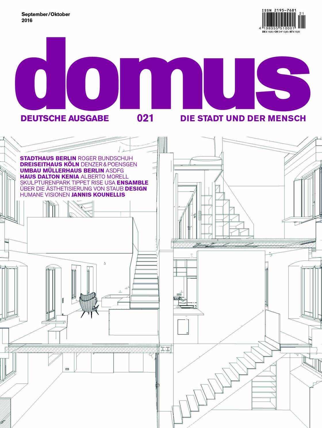 Der Entwurf von Roger Bundschuh in Berlin, der schon in der Linienstraße ein für Berliner Verhältnisse auffälligeres Haus gebaut hat, bricht die typische Blockbebauung der Mehrfamilienhäuser in zwei Gebäudeteile und ein Treppenhaus auf. Die eine Hälfte ist einem Kunstsammler vorbehalten, in der anderen haben mehrere Familien Platz. Das nächste Projekt, das die deutsche Domus exklusiv vorstellt, befindet sich in einer kleinen Gemeinde bei Köln, die einst von Gehöften mit Scheunen und Stallungen geprägt war. Die Architekten Denzer & Poensgen griffen hier die Typologie des Dreiseithofs auf und überführten sie in eine zeitgenössischere Form: Eine geschlossene Natursteinmauer schottet das Haus gegen die Straße und die Öffentlichkeit ab. Da-hinter verstecken sich drei um einen kleinen Innenhof gruppierte Gebäudeflügel. Beim Müllerhaus in Berlin geht es ebenfalls um Rückgriffe auf die Vergangenheit. Das Haus im Hinterhof stammt aus dem Jahr 1844 – es war das erste überhaupt auf dem Prenzlauer Berg und steht somit unter Denkmalschutz. Den Hamburger Architekten asdfg gelang der Spagat, das Gebäude dennoch den heutigen ästhetischen wie funktionalen Anforderungen anzupassen.