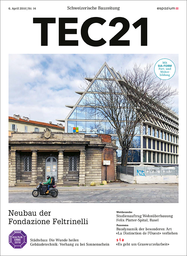 Herzog & de Meuron zeigen mit dem Neubau für die Fondazione Feltrinelli in Mailand eine beispielhafte Lösung. Mit der grosszügigen architektonischen Geste und formalen Wiederholung der Tragstruktur schaffen sie Bezüge zur historischen Mailänder Architektur.