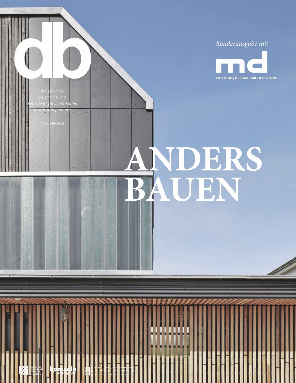 Erhalten werden konnte das Tragwerk des nach traditioneller Technik in Fachwerkbauweise erhaltenen Gebäudes samt der als Sprengwerk ausgeführten Dachkonstruktion; die bestehenden Elemente wurden lediglich sandgestrahlt und konnten dann wiederverwendet werden, wobei Teile der einstigen äußeren Holzbekleidung nunmehr als Innenbekleidung eingesetzt sind. Erhalten blieb überdies der gut 20 Jahre alte Betoneinbau, in den allerdings verschiedene Öffnungen geschnitten wurden. Markant ist insbesondere der fünfeckige Deckendurchbruch, der nicht nur Platz für die Treppe lässt, sondern darüber hinaus auch der Belichtung des EGs dient – und den Sichtverbindungen zwischen den Geschossen. Die Größe des Durchbruchs erzwang eine Verstärkung der verbliebenen Deckenplatte, die mittels CFK-Lamellen erfolgte. Diese mit Epoxidkleber gebundenen Kohlefaserbündel erlaubten es, auf Unterzüge oder Stützen zu verzichten. In der Deckenuntersicht treten sie als schwarze Lineaturen in Erscheinung. Ganz bewusst, denn Auftraggeberschaft und Architekt verfolgten das Konzept, die verschiedenen Materialien sichtbar zu lassen, nach Möglichkeit aber auch später wieder trennen und demontieren zu können. Dies implizierte den weitgehenden Verzicht auf hybride Baustoffe: Die verwendeten Elemente sind weitestgehend naturbelassen und im Idealfall nur verschraubt, sodass sie später demontierbar bleiben und anderenorts wiederverwendet werden können. Auch die Biberschwanzziegel des Dachs wurden erneut eingesetzt, mussten angesichts der neuen Doppeldeckung aber durch neues Material ergänzt werden. Die Küchengeräte stammen von der Bauteilbörse und wurden in einen Unterbau aus Birkensperrholz eingesetzt.