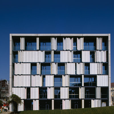 Im Institutsneubau wurden Arbeitsplätze für etwa 300 wissenschaftliche Mitarbeiter vorgesehen. Der Hauptzugang erfolgt von Norden von der Pfotenhauerstraße. Eine Erschließungsstraße über die ganze Grundstückstiefe verbindet – von Nord nach Süd – die drei linear angeordneten Baukörper und Außenbereiche. An beiden Längsseiten der Fassaden überdeckt als Sonnenschutz ein grünes Metallraster das ansonsten mit dunkelblauen Metalltafeln verkleidete Gebäude. Bei Betrachtung aus einem schrägen Winkel ist nur die grüne Oberfläche des Metallrasters sichtbar. Steht der Betrachter jedoch im rechten Winkel zur Fassade, wird die dunkelblaue Metallverkleidung erkennbar.